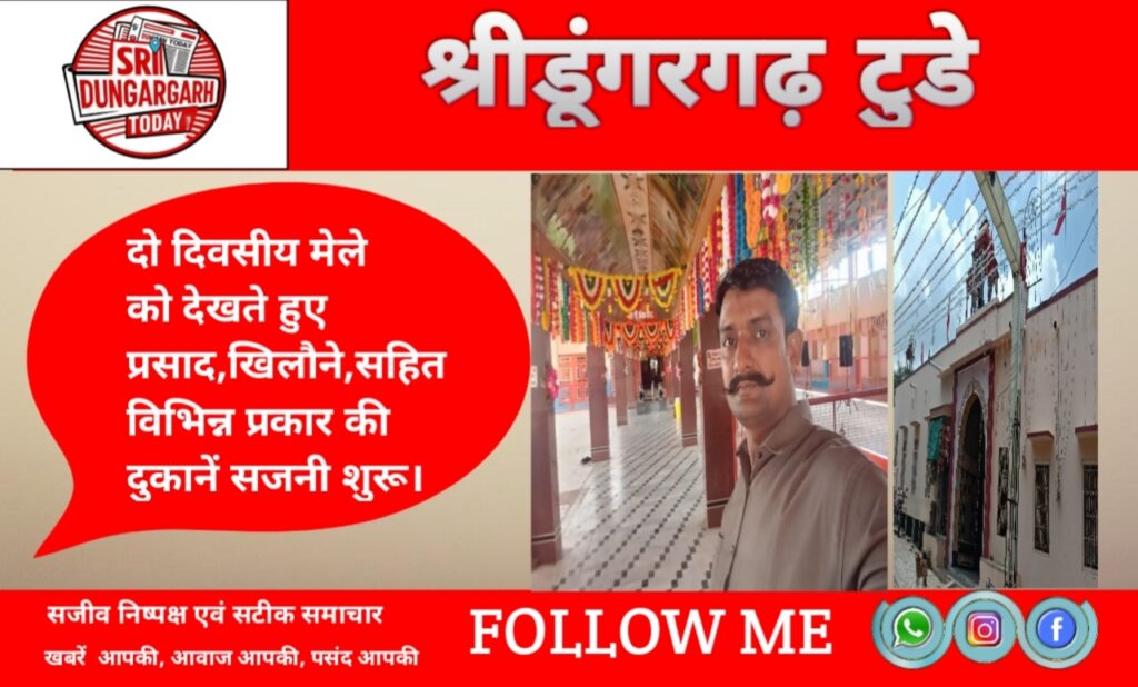 श्रीडूंगरगढ़ 14 किलोमीटर दूर बीकानेर जयपुर नेशनल हाइवे पर स्थित गांव बिग्गा के विश्व रक्षक बाबा श्री भैरूं नाथ के धाम पर अनंत चतुर्दशी के अवसर दो दिवसीय मेला एवं वार्षिकोत्सव शनिवार से शुरू होगा।इस दो दिवसीय मेले की सभी तैयारियों को पूरा कर लिया गया है।मेले स्थानीय सहित विभिन्न जिलों,कस्बों एवं देश के कई प्रांतों से श्रद्धालु पहुंचेंगे ।इस दौरान बाबा भैरूं नाथ का अभिषेक,श्रृंगार पूजा अर्चना के साथ कई धार्मिक अनुष्ठान होगे ।मंदिर पुजारी भगवानाराम सेवग ने बताया कि शनिवार सुबह मंदिर में कई धार्मिक अनुष्ठान होगे ।बाबा का महाभिषेक सहित 101 किलो रोटे का भोग लगाया जाएगा।यहां रात्रि को विशाल जागरण होगा जिसमें महावीर सांखला एंड पार्टी सहित कई प्रख्यात भजन गायकों द्वारा बाबा श्री भैरूं नाथ का गुणगान किया जाएगा।दो दिवसीय मेले को लेकर अस्थाई दुकानें सजनी शुरू हो गई है।दो दिवसीय वार्षिकोत्सव को देखते हुए मंदिर को विभिन्न प्रकार की रोशनी एवं फूलों की सजावट से सजाया गया है।दो दिवसीय मेले की सभी तैयारियों को पूर्ण रूप दिया जा रहा है।