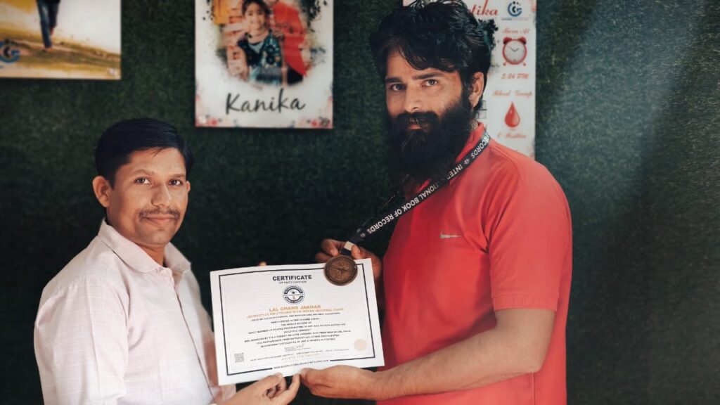 गोविन्द कलर लैब के सांखला और लाला राजस्थानी को मिला इंटरनेशनल बुक ऑफ वर्ल्ड रिकॉर्ड का प्रमाण पत्र व मैडल