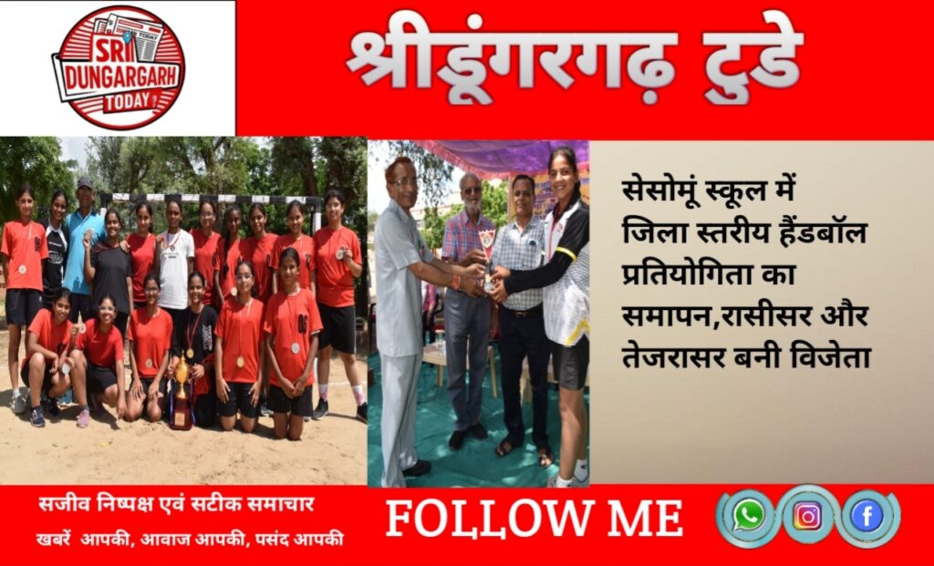 सेसोमूं स्कूल में जिला स्तरीय हैंडबॉल प्रतियोगिता का समापन रासीसर और तेजरासर बनी विजेता