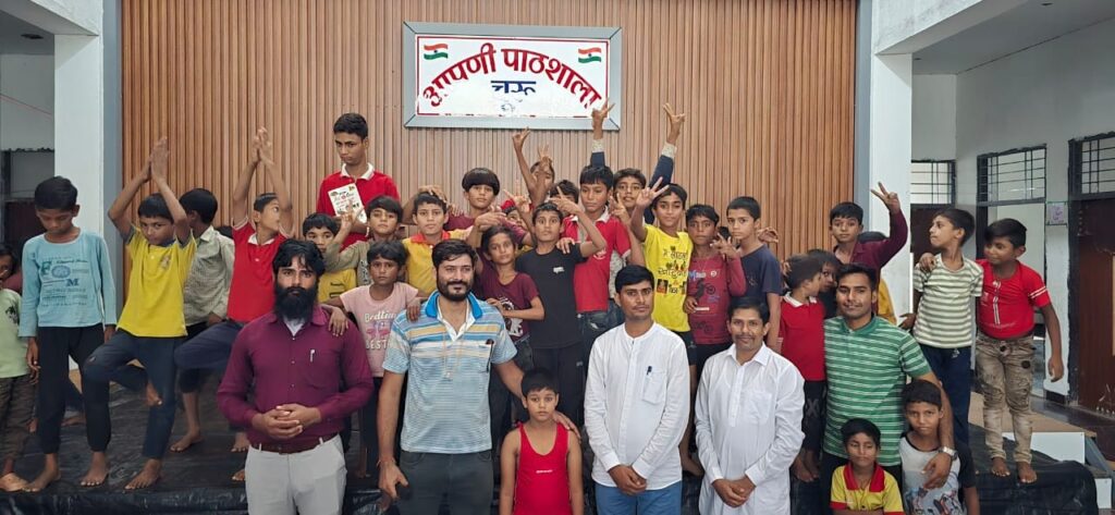श्री डूंगरगढ़ कस्बे की बालिका स्वाध्याय निशुल्क लाइब्रेरी के निदेशक राजस्थान योग प्रशिक्षक महासंघ प्रदेश संरक्षक योगाचार्य ओम प्रकाश कालवा और उनकी टीम ने शनिवार शाम चूरू में गरीब एवं अनाथ बच्चों के लिए प्रेरणा स्रोत साबित हो रही आपणी पाठशाला का निरीक्षण करते हुए बच्चों को योगाभ्यस करवाते हुए फल फ्रुट वितरण किए इस दौरान लाइब्रेरी के व्यवस्थापक हरीश कुमार शर्मा ने बच्चों को जीवन में खूब आगे बढ़ने के लिए प्रेरित किया राजस्थानी भाषा को मान्यता दिलाने के लिए प्रयासरत लाला राजस्थानी ने बच्चों के टेलेंट को सराहा सिद्धि विनायक ई मित्र व बुक स्टोर के संचालक सहीराम रोलन ने आपणी पाठशाला के संचालक पुलीस कॉन्स्टेबल धरमवीर जाखड़ के सेवा कार्य को सराहा सोशल मीडिया पर मशहूर सपाटे किंग राजस्थानी छोटा टार्जन योगानंद कालवा ने बच्चों को योग की महत्वपूर्ण क्रियाओं व सपाटे लगाकर खूब परिश्रम करने के लिए प्रेरणा दी योगगुरू ओम कालवा ने भी संबोधित करते हुए बच्चों के टेलेंट को सराहा सभी को कठिन आसन करवाएं अपनी दैनिक दिनचर्या को सुधारने के लिए प्रेरणा दी व्यवस्था देख रहे सेवादारों को आभार व्यक्त किया इस दौरान कैमरा मैन योगेश व्यवस्था देख रहे संदीप जांगिड़ ने ओम कालवा की पूरी टीम का आभार जताया।