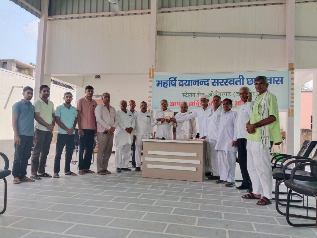 महर्षि दयानंद सरस्वती छात्रावास विकास समिति श्रीडूंगरगढ़ की बैठक एडवोकेट श्याम सुन्दर आर्य की अध्यक्षता में छात्रावास में आयोजित की गई । बैठक में भवन निर्माण कार्य एवं प्रस्तुत एजेण्डे पर चर्चा की गई ।