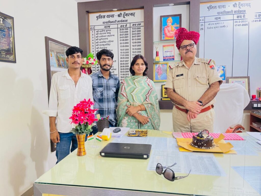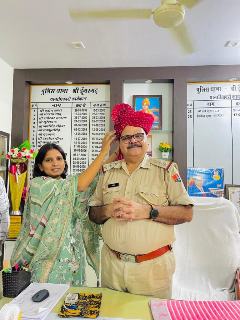 राजस्थान प्रदेश महिला कांग्रेस की महासचिव एवं क्षेत्र की महिला कांग्रेस नेत्री नीरू चौधरी ने आज श्रीडूंगरगढ़ पुलिस थाना पहुंचकर श्रीडूंगरगढ़ थानाधिकारी जितेंद्र स्वामी का जन्मदिन मनाया। उन्होंने स्वामी को साफा पहनाकर  केक  कटवाकर जन्मदिवस की शुभकामनाएं दी।  चौधरी ने कहा कि स्वामी के कार्यकाल में श्रीडूंगरगढ़ में कानून व्यवस्था में काफी सुधार हुआ है।