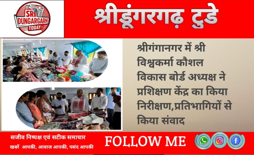 श्रीगंगानगर में श्री विश्वकर्मा कौशल विकास बोर्ड अध्यक्ष ने प्रशिक्षण केंद्र का किया निरीक्षण,प्रतिभागियों से किया संवाद