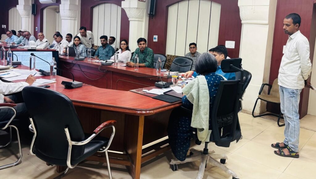 जिला कलेक्टर श्रीमती नम्रता वृष्णि ने बुधवार को कलेक्ट्रेट सभागार में सभी राजस्व अधिकारियों की बैठक ली। बैठक में जिला कलेक्टर ने मुख्यमंत्री कार्यालय से आए परिवेदनाओं की पेंडेंसी,विभिन्न तहसीलों में आपदा से संबंधित प्रपोजल, न्यायालय प्रकरण, फार्मर रजिस्ट्री, प्रधानमंत्री किसान सम्मान निधि, खातेदारी, आम रास्ता, सीलिंग केस, चारागाह भूमि पर अतिक्रमण, 16 और 17 सीसीए के अंतर्गत विभागीय जांच के मामलों की समीक्षा समेत विभिन्न मुद्दों पर समीक्षा करते हुए संबंधित अधिकारियों को निर्देशित किया। जिला कलेक्टर ने कहा कि सीएमओ से आए कुल 28 प्रकरण अभी लंबित हैं इनका संबंधित अधिकारी जल्द निस्तारण करना सुनिश्चित करें।