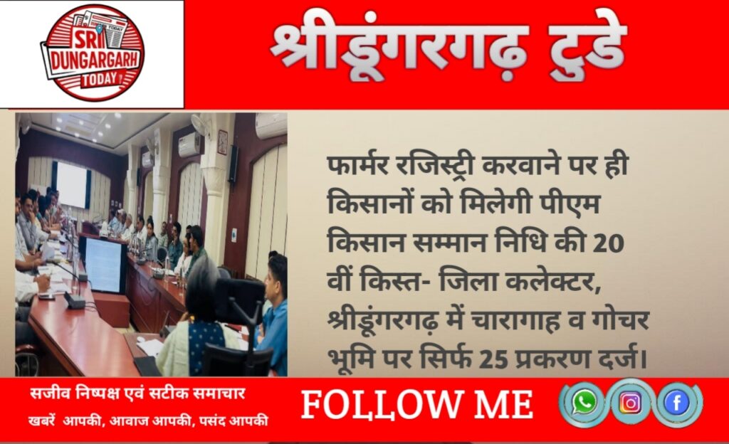 जिला कलेक्टर ने कहा कि चारागाह और गौचर भूमि पर अतिक्रमण के मामले केवल कोलायत, श्री डूंगरगढ़, नोखा और लूणकरणसर में क्रमश 186, 25,06 और 01 दर्ज है अन्य तहसीलों में दर्ज क्यों नहीं है। जिला कलेक्टर ने सभी तहसीलों में चारागाह और गोचर भूमि पर अतिक्रमण के मामलों को दर्ज करने के निर्देश दिए।