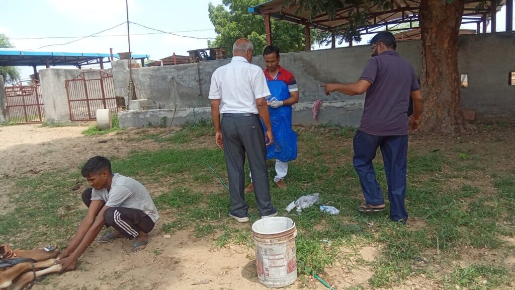 श्री गोपाल गौशाला दुलचासर में बुधवार को ग्रामीण  एक  घायल निराश्रित गौवंश को लेकर पहुंचे और ग्रामीणों ने बताया  कि कोई अज्ञात वाहन  इस गोवंश को टक्कर लगाकर चला गया  जिसके कारण इसका एक पैर टुट गया है। सचिव रेवन्त सिंह पड़िहार ने बताया कि इस निराश्रित गोवंश को गौशाला में दाखिल कर राजकीय प्रथम श्रेणी पशु चिकित्सालय दुलचासर के डॉ सुभाष घारू द्वारा उपचार करवाया गया है। गोवंश के उपचार के दौरान डॉ घारू का सहयोग कमेटी के सुंदर लाल मुंधड़ा ने दिया गौशाला कर्मचारी महेंद्र सिंह चाहर,पवन कुमार ने सहयोग दिया। सचिव रेवन्त सिंह पड़िहार ने  ग्रामीण श्री प्रेमा राम महिया, धर्मेंद्र,मनोज सिंह पड़िहार, किशन सिंह पड़िहार , प्रेमा राम महिया ने घायल गौवंश को समय पर गौशाला पहुंचाने पर आभार जताया।