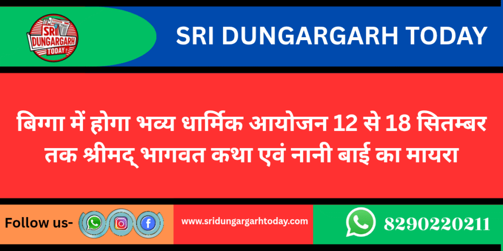 बिग्गा में होगा भव्य धार्मिक आयोजन 12 से 18 सितम्बर तक श्रीमद् भागवत कथा एवं नानी बाई का मायरा
