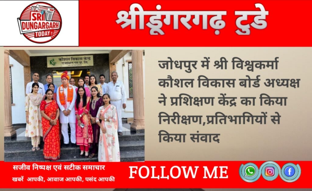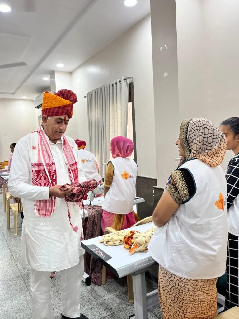 श्री विश्वकर्मा कौशल विकास बोर्ड के अध्यक्ष श्री रामगोपाल सुथार ने आरएसएलडीसी कौशल प्रशिक्षण केंद्र द्वारा संचालित लघु भारती उद्योग सेंटर, जोधपुर का शुक्रवार को निरीक्षण किया। इस दौरान उन्होंने प्रशिक्षण प्राप्त कर रहे प्रतिभागियों से संवाद कर उनकी राय जानी सुथार ने कपड़े से तैयार किए गए विभिन्न उत्पादों का अवलोकन किया।