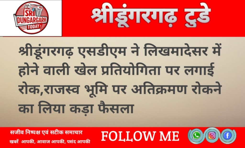 श्रीडूंगरगढ़ एसडीएम ने लिखमादेसर में होने वाली खेल प्रतियोगिता की पूर्व अनुमति को किया रद्द