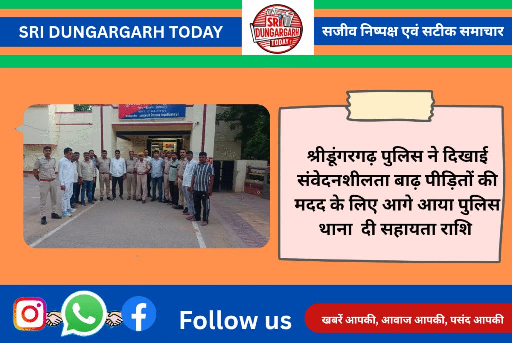 श्रीडूंगरगढ़ पुलिस का मानवीय चेहरा बाढ़ पीड़ितों की मदद के लिए आगे आया पुलिस थाना दी सहायता राशि