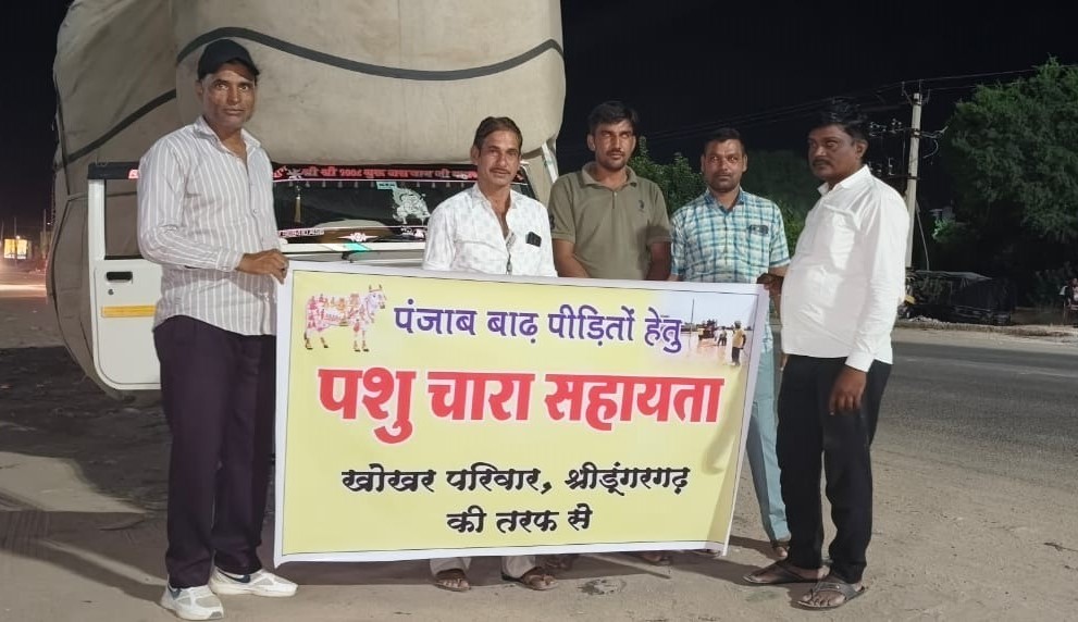 खोखर परिवार ने पंजाब के बाढ़ पीड़ितों के लिए पशु चारा सहायता दी है। यहां अयूब खोखर, सलीम खोखर, आरिफ, मुस्तकीम, हनुमान, उस्मान, आसिफ, आरिफ, बबलू, आबिद, हरि, आदिल, सेफ, बिलाल मौजूद रहें।