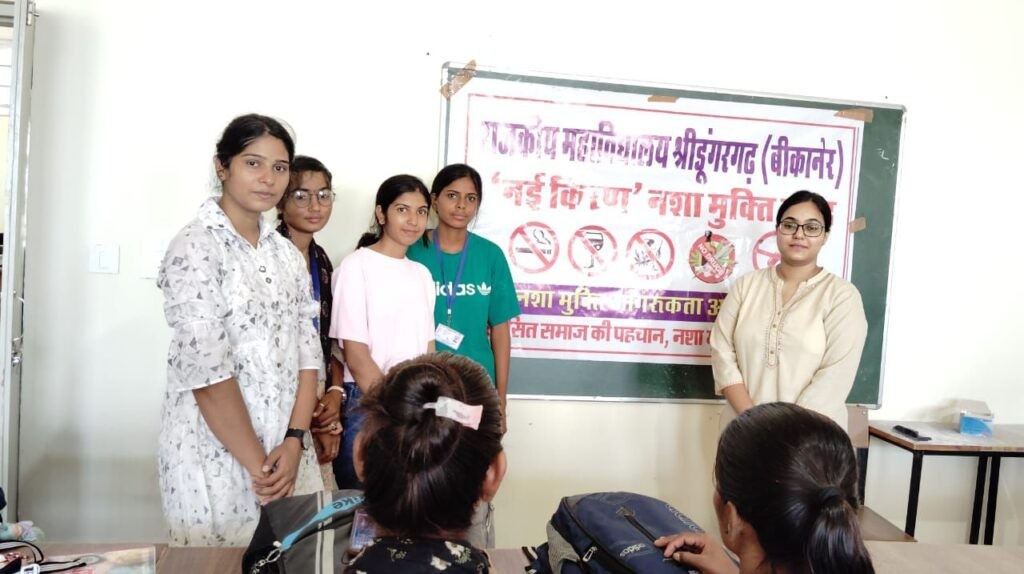 राजकीय महाविद्यालय श्रीडूंगरगढ़ में सोमवार को नशा मुक्ति ई-शपथ महाअभियान आयोजित हुआ। इसमें विद्यार्थियों और कर्मचारियों ने जीवनभर नशे से दूर रहने तथा समाज में इसके खिलाफ जागरूकता फैलाने का संकल्प लिया।