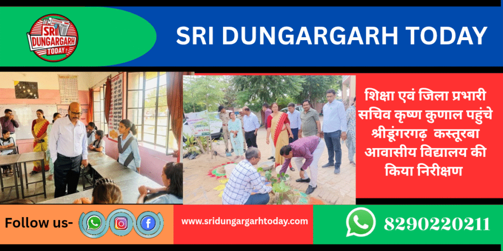 शिक्षा सचिव एवं जिला प्रभारी सचिव कृष्ण कुणाल बुधवार को श्रीडूंगरगढ़ पहुंचे। यहां पंचायत समिति परिसर में माध्यमिक शिक्षा निदेशक सीताराम जाट, जिला परिषद सीईओ सोहनलाल, उपखंड अधिकारी शुभम शर्मा, बीडीओ मनोज धायल, ब्लॉक शिक्षा अधिकारी सरोज वीर पूनियां ने उनका स्वागत किया। सभागार में प्रभारी सचिव ने बैठक ली और गांव चलो अभियान व शहर चलो अभियान में सेवाएं देने की बात कही यहां से प्रभारी सचिव ने जैतासर में संचालित कस्तूरबा गांधी आवासीय विद्यालय पहुँचे तथा विद्यालय का निरीक्षण किया। इस दौरान शिक्षा निदेशक सीताराम जाट, जिला परिषद के मुख्य कार्यकारी अधिकारी सोहनलाल तथा जिला शिक्षा अधिकारी माध्यमिक (मुख्यालय) किशन दान चारण, एडीपीसी कृष्ण कुमार बिश्नोई, सहायक निदेशक विक्रम सिंह चौहान सहित शिक्षा विभाग के अन्य अधिकारी मौजूद रहे।