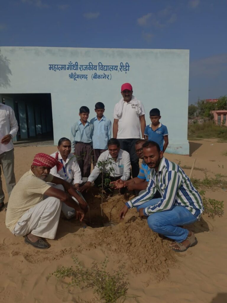 प्रधानमंत्री नरेन्द्र मोदी के जन्मदिन पर “एक पेड़ मां के नाम” अभियान तथा मुख्यमंत्री भजनलाल शर्मा की अपील पर “हरियालो राजस्थान” महाअभियान के तहत आज क्षेत्र के गांव रिड़ी के महात्मा गांधी राजकीय विद्यालय मे एक पेड़ माँ के नाम अभियान 2.0 के अंतर्गत पौधारोपण का आयोजन किया गया प्राचार्य मक्खन लाल मीणा ने बताया कि इस दौरान विभिन्न प्रकार के छायादर पौधे लगाए गए। प्राचार्य ने एक पेड़ माँ के नाम लगाने का संदेश दिया। उन्होंने कहा कि जब हम मां के नाम एक पेड़ लगाते हैं, तो हम धरती को भी मातृत्व का सम्मान दे रहे होते हैं। उन्होंने सभी से पेड़ लगाने की अपील की। इस दौरान मक्खनलाल मीणा, शंकरलाल गोदारा, प्रदीप स्वामी अब्दुल वासिद, ईश्वर राम भार्गव , नरसीराम शर्मा सामाजिक कार्यकर्ता पुरनाथ सिद्ध सहित विद्यार्थियों ने पौधारोपण कर उनकी देखभाल का संकल्प लिया। प्राचार्य मक्खनलाल मीणा ने सभी का आभार जताया।