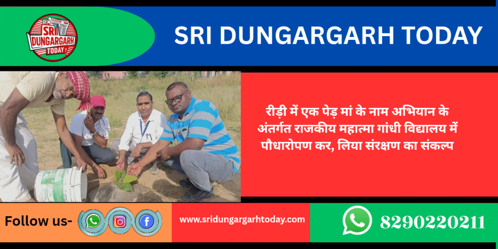 प्रधानमंत्री नरेन्द्र मोदी के जन्मदिन पर “एक पेड़ मां के नाम” अभियान तथा मुख्यमंत्री भजनलाल शर्मा की अपील पर “हरियालो राजस्थान” महाअभियान के तहत आज क्षेत्र के गांव रिड़ी के महात्मा गांधी राजकीय विद्यालय मे एक पेड़ माँ के नाम अभियान 2.0 के अंतर्गत पौधारोपण का आयोजन किया गया प्राचार्य मक्खन लाल मीणा ने बताया कि इस दौरान विभिन्न प्रकार के छायादर पौधे लगाए गए। प्राचार्य ने एक पेड़ माँ के नाम लगाने का संदेश दिया। उन्होंने कहा कि जब हम मां के नाम एक पेड़ लगाते हैं, तो हम धरती को भी मातृत्व का सम्मान दे रहे होते हैं। उन्होंने सभी से पेड़ लगाने की अपील की। इस दौरान मक्खनलाल मीणा, शंकरलाल गोदारा, प्रदीप स्वामी अब्दुल वासिद, ईश्वर राम भार्गव , नरसीराम शर्मा सामाजिक कार्यकर्ता पुरनाथ सिद्ध सहित विद्यार्थियों ने पौधारोपण कर उनकी देखभाल का संकल्प लिया। प्राचार्य मक्खनलाल मीणा ने सभी का आभार जताया।