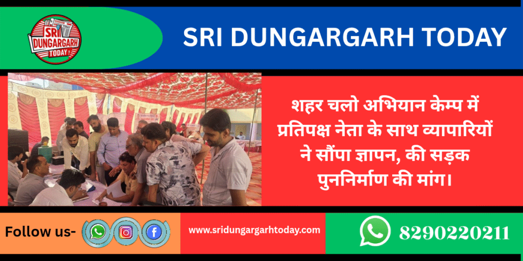 शहर चलो अभियान केम्प में प्रतिपक्ष नेता के साथ व्यापारियों ने सौंपा ज्ञापन, की सड़क पुननिर्माण की मांग।