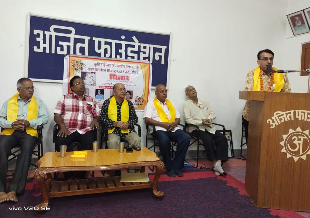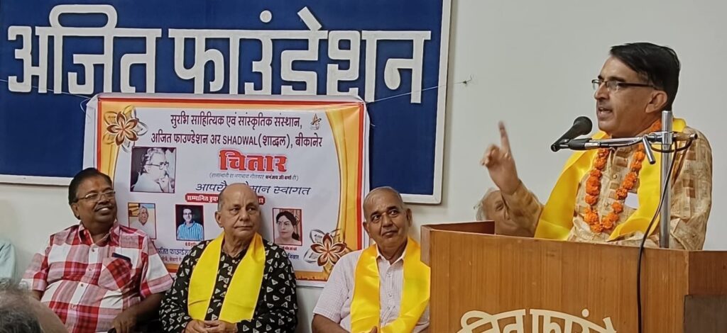 बीकानेर। सुरभि, अजित फाउंडेशन और शाद्वल के संयुक्त तत्वावधान में 20 सितंबर को प्रबुद्ध मनीषियों के साथ अजित फाउंडेशन सभागार में कीर्तिशेष लोकप्रिय राजस्थानी कवि गीतकार धनंजय वर्मा की स्मृति में ‘चितार’ समारोह आयोजित किया गया। सुरभि के गोविन्द जोशी ने बताया कि बताया कि इस अवसर पर इतिहास और संस्कृति वेत्ता जानकी नारायण श्रीमाली सहित राजस्थानी साहित्य में विशिष्ट अवदान देने वाली विभूतियों रवि पुरोहित, राजेन्द्र स्वर्णकार एवं मनीषा आर्य सोनी को सम्मानित किया गया।