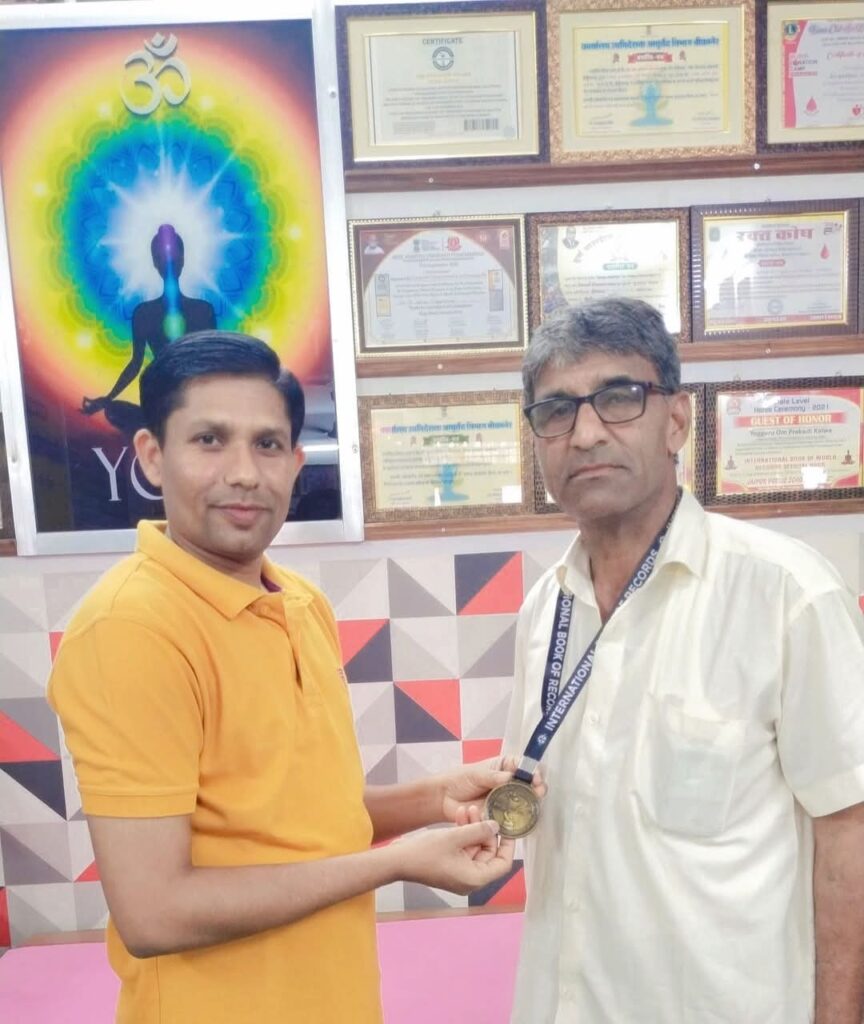 श्रीडूंगरगढ़ कस्बे के राजस्थान योग प्रशिक्षक महासंघ के प्रदेश संरक्षक ख्याति प्राप्त योगाचार्य ओम प्रकाश कालवा ने जानकारी देते हुए बताया रविवार दोपहर सीकर प्रवास पर आयुष सेवा संस्थान पर राजस्थान योग प्रशिक्षक महासंघ के प्रदेश कार्यकारी अध्यक्ष योगाचार्य राकेश कुमार तुनवाल की विशेष अनुसंशा पर लंबे समय से सेवा दे रहे कर्मठ कार्यकर्ता योगाचार्य जय सिंह जांगिड़ सीकर को योग महासंघ का प्रदेश महामंत्री पद पर नियुक्त किया इस दौरान आयुष सेवा संस्थान के निदेशक व योग महासंघ के प्रदेश अध्यक्ष क्रांतिकारी योगाचार्य रामावतार यादव, योग महासंघ के प्रदेश महासचिव मनोज सैनी ने पतंजली योग पीठ हरिद्वार में बैठे ऑन लाइन विडियो कॉल कर बधाई दी, लाला राजस्थानी श्री डूंगरगढ़ व बालिका स्वाध्याय निशुल्क लाइब्रेरी के व्यवस्थापक हरीश कुमार शर्मा फतेहपुर, विकाश कुमार शर्मा सभी ने जांगिड़ को प्रदेश महामंत्री की नियुक्ती पर हार्दिक बधाई एवं शुभकामनाएं दी