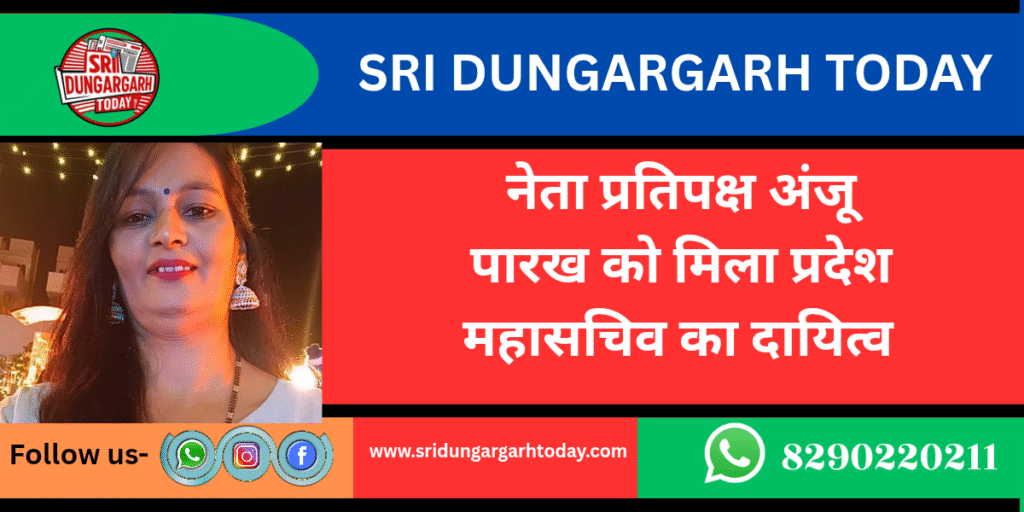 राजस्थान प्रदेश कांग्रेस कमेटी ने मंगलवार को संगठन के अभाव अभियोग प्रकोष्ठ में पदाधिकारियों की नियुक्ति सूची जारी की गई है। सूची में श्रीडूंगरगढ़ कांग्रेस की महिला नेत्री अंजू पारख को प्रदेश महासचिव का दायित्व सौंपा   गया है। पारख ने निष्ठापूर्ण दायित्व निर्वहन की बात कहते हुए नई जिम्मेदारी मिलने पर पार्टी के प्रदेशाध्यक्ष गोविंद सिंह डोटासरा सहित पार्टी के शीर्ष नेताओं का आभार जताया है। पारख की नियुक्ति पर क्षेत्र के  कांग्रेसी कार्यकर्ताओं ने शुभकामनाएं दी