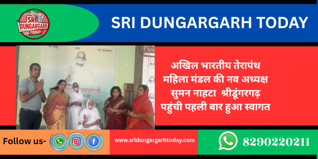 अखिल भारतीय तेरापंथ महिला मंडल की अध्यक्ष बनने के बाद सुमन नाहटा का श्रीडूंगरगढ़ मे उनका प्रथम आगमन रहा इस अवसर पर उनका और कार्यसमिति का माल्यार्पण व जैन दुपट्टा ओढ़ाकर स्वागत किया।