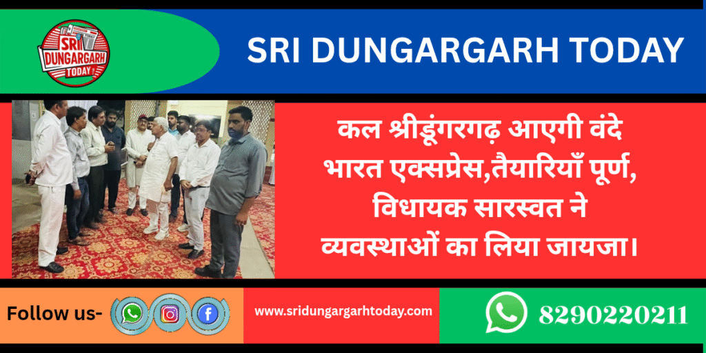 कल श्रीडूंगरगढ़ आएगी वंदे भारत ट्रेन,तैयारियाँ पूर्ण,विधायक सारस्वत ने व्यवस्थाओं का लिया जायजा।