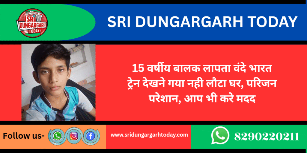 लापता बालक के चाचा श्रवण जाट ने बताया कि शीशपाल जाट गुरुवार को स्कूल से घर लौटने के बाद वंदे भारत ट्रेन देखने रेलवे स्टेशन गया था, लेकिन उसके बाद से वह घर नहीं लौटा। परिजनों ने बताया कि किशोर टी-शर्ट और पेंट पहने हुए था।