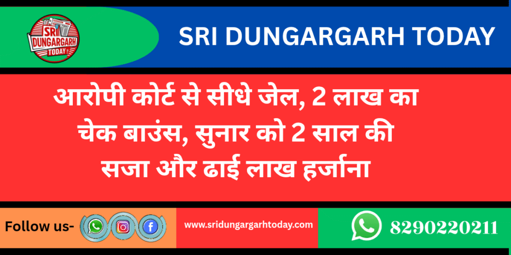 सोने के बदले दिए गए चेक के बाउंस होने पर न्यायालय ने आरोपी परमेश्वर पुत्र रामचन्द्र उर्फ रामलाल सुनार निवासी कालूबास, वार्ड 36 को सीधा जेल भेज दिया। अतिरिक्त जिला एवं सेशन न्यायाधीश सरिता नौशाद ने आरोपी की अपील खारिज करते हुए निचली अदालत का फैसला यथावत रखा। अदालत ने उसे 2 साल का कारावास और परिवादी को ढाई लाख रुपये हर्जाना देने का आदेश सुनाया।