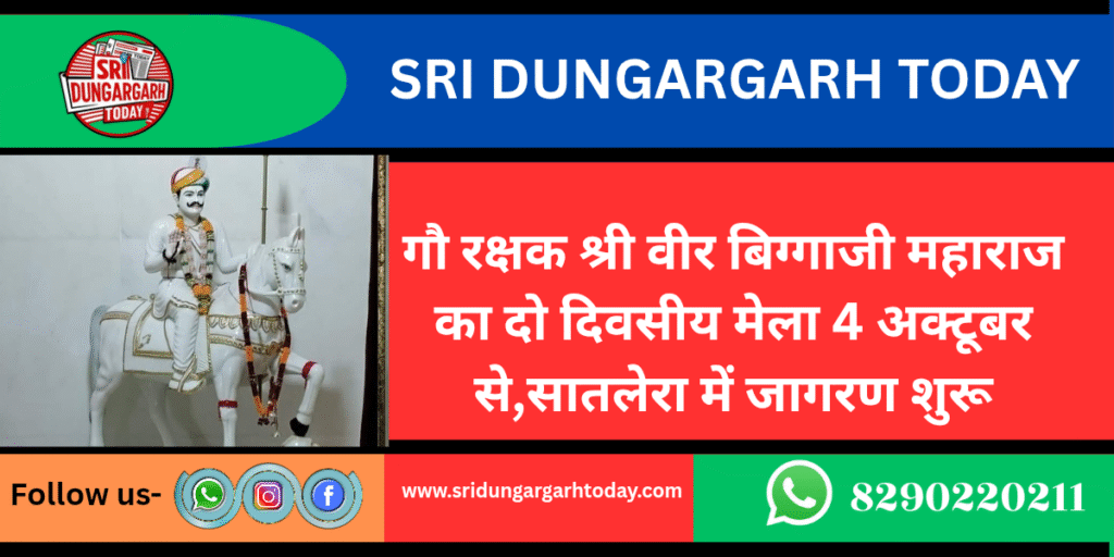गौ रक्षक श्री वीर बिग्गाजी महाराज का दो दिवसीय मेला 4 अक्टूबर से,सातलेरा में जागरण शुरू