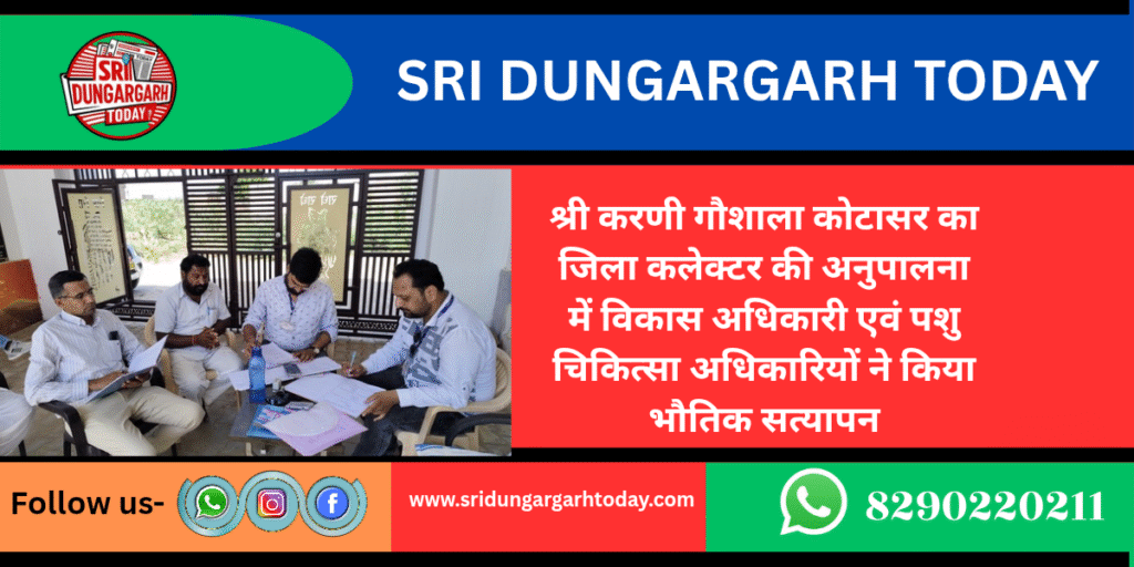 श्री करणी गौशाला कोटासर का जिला कलेक्टर की अनुपालना में विकास अधिकारी एवं पशु चिकित्सा अधिकारियों ने किया भौतिक सत्यापन