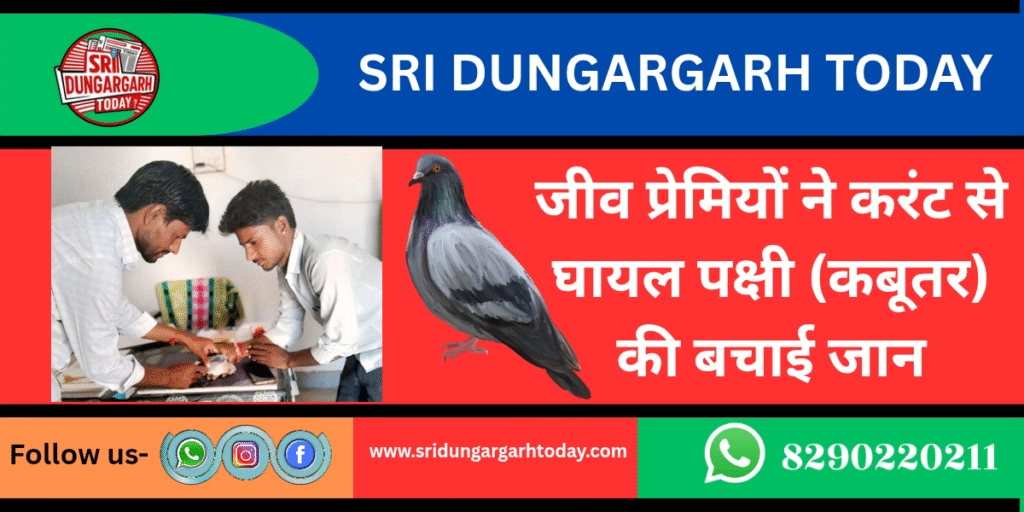 क्षेत्र के बिरमसर में जीव प्रेमीयों ने अपनी करुणा और प्रयासों से घायल पक्षी की जान बचाई। युवा क्रांतिकारी संगठन के सदस्य लालचन्द गोयल ने बताया की आज सुबह एक कबूतर करंट की चपेट में आ गया और पोल से निचे गिर गया ABVP के पुर्व नगर मंत्री लालचन्द गोयल और शयोपत नाई, नोपाराम गोयल ने घायल पक्षी को तुरंत रेस्क्यू किया और घायल पक्षी को राजकीय पशु चिकित्सा उदरासर लेकर गए। जहां डॉ लालाराम लुखा ने प्राथमिक उपचार किया और कहा पशु-पक्षीयों व वन्य जीवों की सेवा करनी चाहिए ऐसे ही जीव प्रेमी होगे तो पशु पक्षी पर्यावरण को लाभ मिलता रहेगा युवा क्रन्तिकारी संगठन ने डॉ लालाराम लुखा का घायल पक्षी का प्राथमिक उपचार कर जान बचाने के लिए आभार व्यक्त किया।
