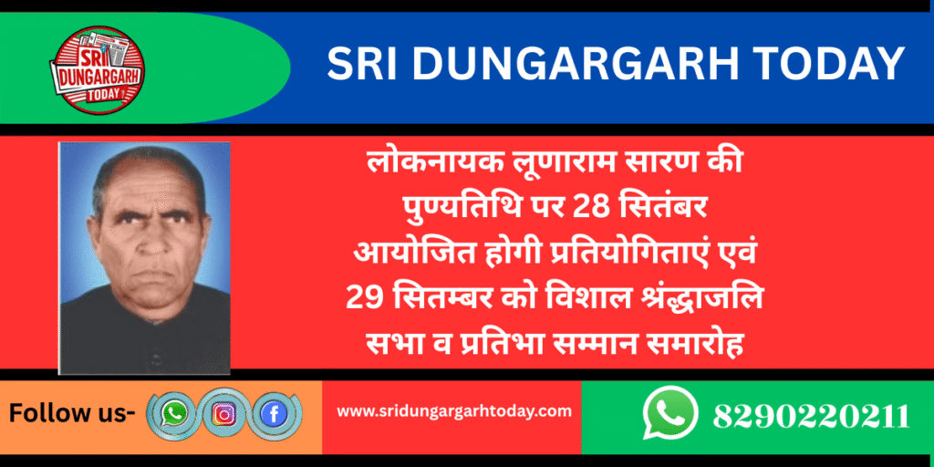 लोकनायक लूणाराम सारण की पुण्यतिथि पर 28 सितंबर आयोजित होगी प्रतियोगिताएं एवं 29 सितम्बर को विशाल श्रंद्धाजलि सभा व प्रतिभा सम्मान समारोह