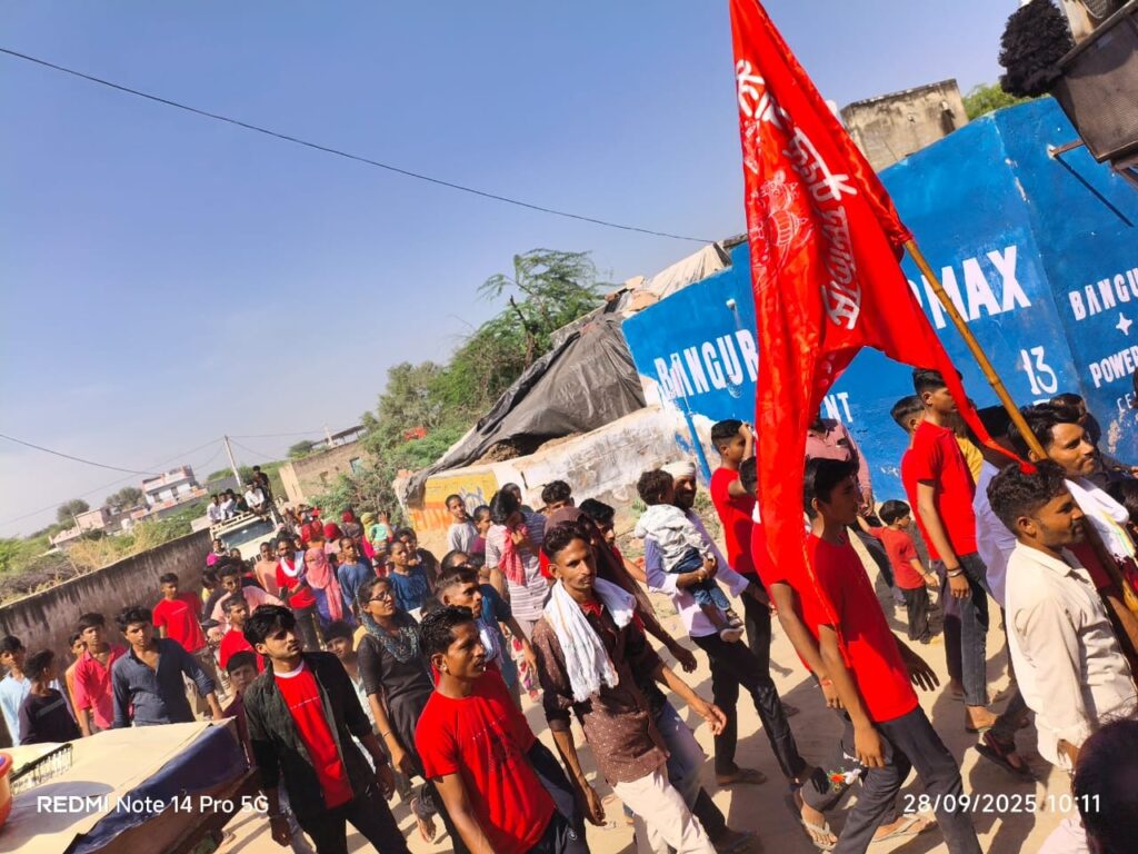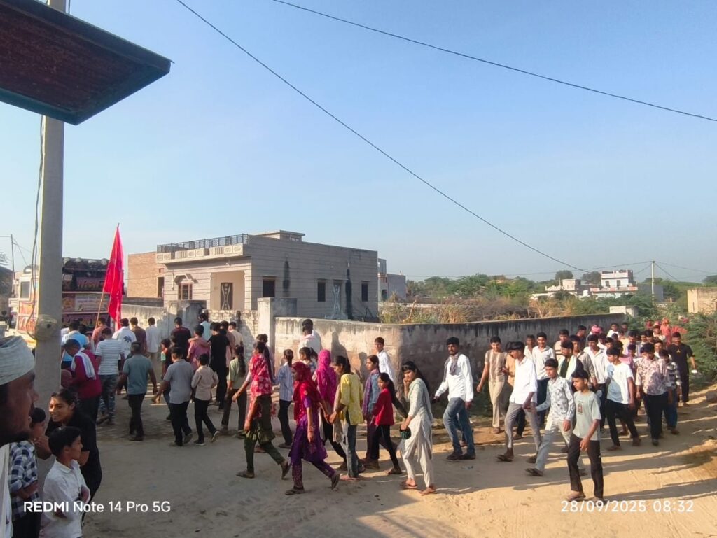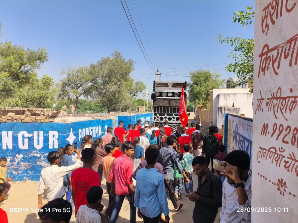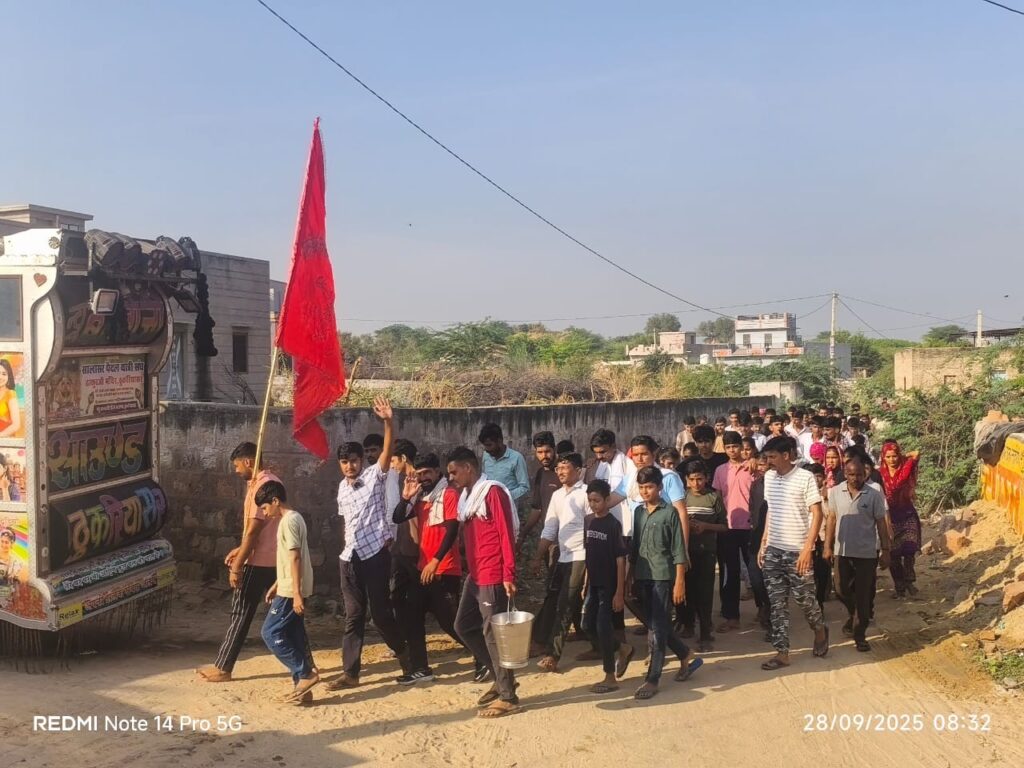 श्रीडूंगरगढ़ टुडे 28 सितंबर 2025(जी एस सातलेरा) हाथ में लाल ध्वजा , जुबां पर वीर बजरंगी के जयकारों का उदघोष,पैरों में बंधे घुंघरू की झंकार के साथ डीजे पर बज रहे “लागे तावड़ो सालासर के मेला में मेरी मां बाबे ने कहदे ताण छतरी” जैसे भक्ति रस से सरोबार आस्था से ओत प्रोत भजनों पर नाचते गाते बच्चे महिला पुरुष आसमान से उड़ती गुलाल के बीच जयकारों से सराबोर गांव की गलिया यह दृश्य था गांव सातलेरा में जहां आज सुबह एक साथ गांव से सालासर दो पैदल यात्री संघ रवानगी का ।गांव सातलेरा से आज सुबह सालासर के लिए दो पैदल यात्री संघों की रवानगी से गांव का कोना कोना भक्ति रस में लीन नजर आया।यहां से श्री सालासर पैदल यात्री संघ एवं बाबा रामदेव सुपरफास्ट संघ गाजे बाजे के साथ पूजा अर्चना के बाद जयकारों के साथ रवाना हुआ।रवानगी से पूर्व श्री सालासर पैदल यात्री संघ द्वारा शनिवार को बाबा बजरंगबली के मंदिर में संगीतमय सुंदरकांड का आयोजन रखा गया।मंदिर पुजारी जीवनदास स्वामी ने संघ को ध्वजा सौंपते हुए तिलक लगाकर सभी पैदल यात्रियों को शुभकामनाएं देते हुए जयकारों के साथ रवाना किया।संघ द्वारा गांव के सभी मंदिरों में धोक लगाने के बाद संघ वीर बिग्गाजी महाराज की शौर्य पीठ धड़ देवली धाम पहुंचकर धोक लगाने के बाद सालासर के लिए प्रस्थान हुआ ।संघ के व्यवस्थापक बजरंगदास स्वामी,कुंभाराम तावनियां ने बताया कि संघ में 152 पैदल शामिल हैं।संघ के संचालक रामनिवास,जितेंद्र सिंह राठौड़ ने बताया कि संघ मंगलवार शाम को सालासर धाम पर पहुंच कर बाबा बजरंगबली से आशीर्वाद लेगा ।वहीं बाबा रामदेव सुपरफास्ट संघ भी आज सुबह बाबा रामदेव जी महाराज के मंदिर में पूजा अर्चना एवं ज्योत का दर्शन लाभ लेने के साथ पुजारी रेवंतराम मेहरा ने द्वारा संघ के सभी यात्रियों को तिलक लगाकर शुभकामनाओं के साथ रवाना किया।संघ द्वारा गांव के सभी मंदिरों में धोक लगाने के बाद वीर बिग्गाजी महाराज की शौर्य पीठ धड़ देवली धाम में पूजा अर्चना की गई।संघ के व्यवस्थापक मानाराम मेहरा ने बताया कि संघ में 40 पैदल यात्री शामिल हैं।