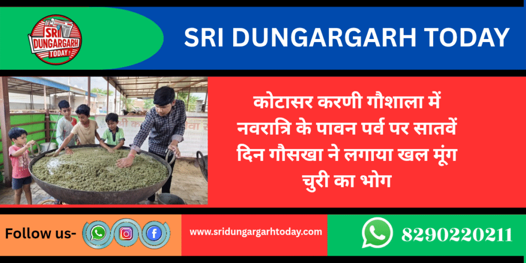शारदीय नवरात्रि के अति पावन अवसर पर नौ दिवसीय भंडारा का आज सातवें दिन है आज का भंडारा गौसखा परम गौ भक्त नीरज सिंह बीकानेर की तरफ से ₹2500 की राशि समर्पित कर गौ माताओं को मुंगचुरी का अति पावन भंडारा समर्पित कर सुख समृद्धि की कामना की है गौशाला कमेटी ने परिवार के लिए सुख समृद्धि की कामना की एव आभार व्यक्त कर धन्यवाद ज्ञापित किया।