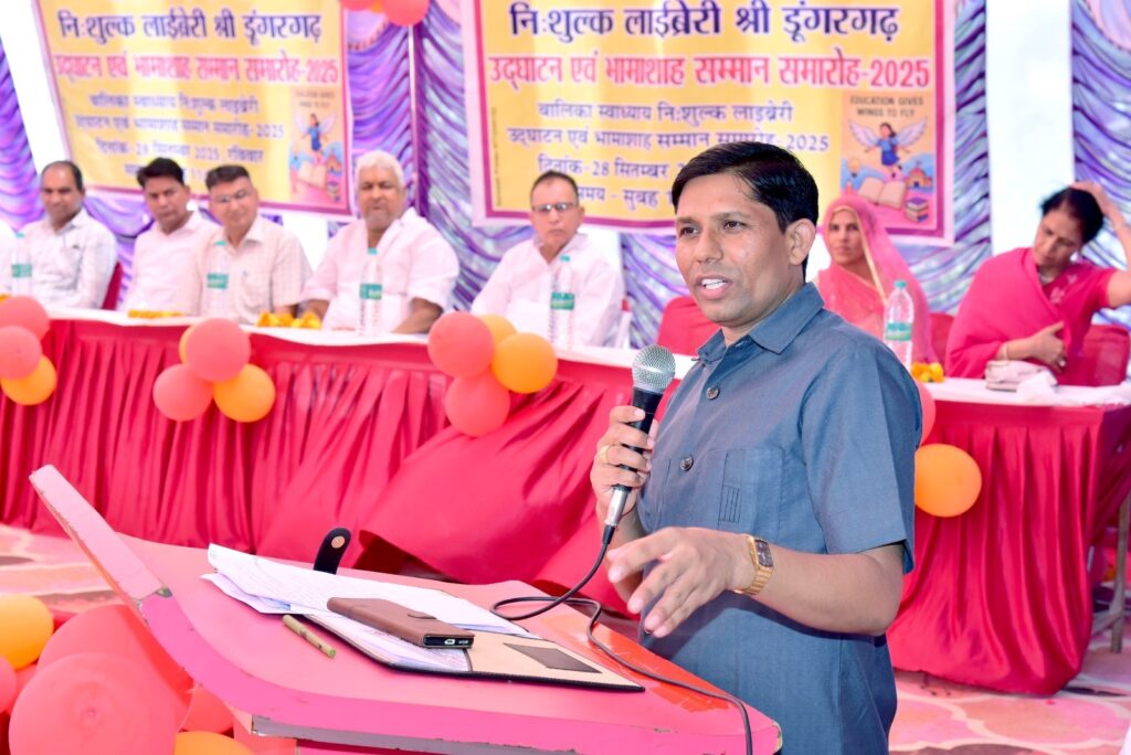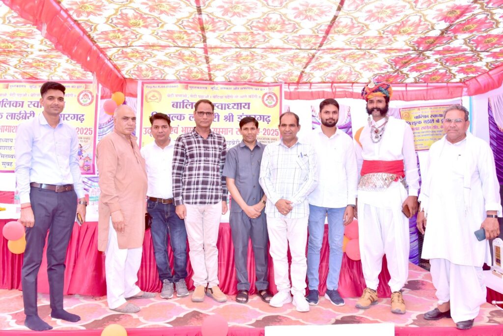 श्रीडूंगरगढ़ कस्बे की देवनारायण कॉलोनी में क्षेत्र की सर्व समाज की जरूरतमंद बेटियों के लिए संभाग की पहली निशुल्क लाइब्रेरी का हुआ भव्य उद्धघाटन बालिका स्वाध्याय निशुल्क लाइब्रेरी जो क्षेत्र की 50 जरूरतमंद बेटियों के लिए शुरू हुई है। जिसका उद्घाटन कस्बे के समाज सेवी व भामाशाह श्रीगोपाल राठी के कर कमलों द्वारा किया गया कार्यक्रम के मुख्य अतिथि परम आदरणीय गुरूदेव रामदेव जी बोहरा रहे मुख्य वक्ता के रूप में राजस्थान योग प्रशिक्षक महासंघ के प्रदेश अध्यक्ष क्रांतिकारी योगाचार्य रामावतार यादव सीकर विशिष्ट अतिथि किशनगढ़ इंडसइंड ब्रांच एवीपी सह शाखा प्रबंधक नरेंद्र सिंह राजपुरोहित, पटवारी हरिराम सारण, माध्यमिक शिक्षा निदेशालय निजी सचिव दीपक शर्मा, अखिल भारतीय राजपुरोहित नारी शक्ति समिति राष्ट्रीय अध्यक्षा सोनिया राजपुरोहित, सेसोमू स्कूल के चेयरमैन पदमा जगदीश मूंधड़ा कार्यक्रम की अध्यक्षता सेवानिवृत जिला शिक्षा अधिकारी गजानंद सेवग चेयरमैन मंजु देवी व्यवस्थापक हरीश कुमार शर्मा कार्यकारिणी सदस्य राकेश कुमार पडिहार, दामोदर बोहरा, मनीष कुमार धामा, सहीराम रोलन, नवीन शर्मा मंच संचालन संस्था निदेशक योगाचार्य ओम प्रकाश कालवा व संस्था सदस्य लाला राजस्थानी फोटोग्राफी में गोविन्द कलर लैब के संचालक खिवराज़ सांखला व उनकी टीम स्वागत में ओम योग सेवा संस्था, बालिका स्वाध्याय निशुल्क लाइब्रेरी परिवार, राजस्थान योग प्रशिक्षक महासंघ, तुलसी सेवा संस्थान योगा टीम कार्यक्रम में मंचासीन अथितियों का माल्यार्पण व प्रतीक चिन्ह भेंट कर सम्मानित किया कस्बे के गणमान्य नागरिक रतन सिंह राठौड़, सुल्तान स्वामी, सूर्तनाथ सिद्ध, श्रीडूंगरगढ़ टूडे के मनोज मूंधड़ा, पूरनाथ सिद्ध, सत्यदीप, रामावतार शर्मा फतेहपुर, राकेश तूनवाल, जयसिंह जांगिड, भंवर लाल मास्टर, रेखाराम कालवा, अजय कुमार सुखीजा, चुनीलाल खटनानी, कैलाश सारस्वत, दीनदयाल तावनियाँ, शिव स्वामी, ललिता प्रजापत, अनीता प्रजापत, मनीषा सोनी, सुमन कालवा, भंवरी कालवा, पेमा कालवा, सरोज, दीपिका सुखीजा, नोरंग स्वामी, परमेश्वर स्वामी, मूलचंद पालीवाल, अनमोल मोदी, रूघाराम रोलन, प्यारेलाल सोनी, मोहित स्वामी बीकानेर, तेजाराम पडिहार, लूणाराम रोलन, कार्यक्रम में पत्रकार शुभकरण पारीक व रामाकांत झंवर को भी प्रतीक चिन्ह भेंट कर सम्मानित किया गया मंचासीन अतिथियों ने इस नेक कार्य की सराहना की 50 भामाशाहों का भव्य सम्मान किया गया। पीडब्ल्यूडी मे सेवारत मीणा साहब ने बेटियों की लाइब्रेरी के लिए एक एसी की घोषणा की व सिद्धि विनायक स्टोर के संचालक सहीराम रोलन द्वारा समय समय पर निशुल्क पुस्तकें भेंट करने की घोषणा की व सात हज़ार पांच सो रूपये की पुस्तकें भे