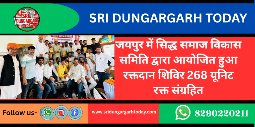 सिद्धेश्वर जसनाथ महाराज हाराज के अंतर्ध्यान दिवस के पावन अवसर पर रविवार को सिद्ध समाज विकास समिति, जयपुर की ओर से सवाई मान सिंह (SMS) स्टेडियम में विशाल रक्तदान शिविर का आयोजन किया गया।