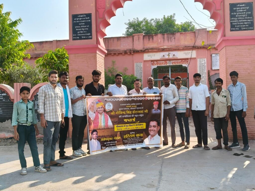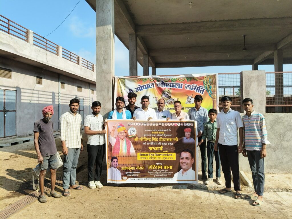 प्रदेश भर में आज कांग्रेस में प्रदेशाध्यक्ष गोविंदसिंह डोटसरा के जन्मदिन का उत्साह है। नेता व कार्यकर्ता उनके जन्मदिन पर सेवा कार्यों का आयोजन कर रहें है। श्रीडूंगरगढ़ में युवा कांग्रेस के बैनर तले युवाओं ने डोटासरा के जन्मदिन के अवसर पर गौरव पथ पर स्थित गोपाल गौशाला में गौवंश को गुड़ खिलाया और अपने नेता के दीर्घायु  व स्वस्थ जीवन की मंगलकामना की। युवा कांग्रेस के विधानसभा प्रभारी संतोष गोदारा ने बताया कि प्रदेशाध्यक्ष के जन्मदिन पर पीसीसी सदस्य हरिराम बाना के निर्देशन में  यह आयोजन किया गया इस दौरान प्रकाश दुसाद, किशन मलघट, मोहन गोदारा, राधेश्याम पारीक अशोक सारण, कैलाश गोदारा, गणेश चौधरी, पंकज सेवक, सुखराम गोदारा, राहुल शर्मा, शुभकरण मूंड रामदयाल शर्मा, महेन्द्र प्रजापत मौजूद रहें।