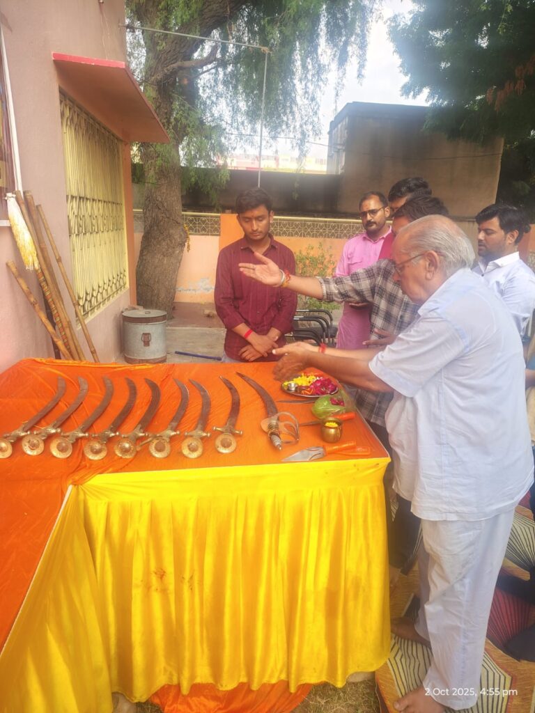 गुरुवार सांय 4 बजे गोसाईं मन्दिर कालुबास में विश्वहिंदू परिषद, बजरंग दल, मातृ शक्ति और दुर्गा वाहिनी के संयुक्त तत्वावधान में भव्य शस्त्र पूजन का आयोजन किया गया।कार्यक्रम की शुरुआत सरंक्षक भँवरलाल दुगड़, जिला अध्यक्ष जगदीश स्वामी, प्रखण्ड अध्यक्ष रविकांत सैनी जिला सहमंत्री वासुदेव सारस्वत ने दीप प्रज्वलन कर कोय। तपश्चात प्रभु श्री राम व दुर्गा मां की महाआरती पंडित पवन उपाध्याय ने संपन्न करवाई उसके पश्चात सत्संग प्रमुख तिलोक प्रजापत ने विजय महामंत्र का उच्चारण किया। शस्त्र पुजन के दौरान विभिन्न प्रकार के शस्त्रों का पूजन किया गया।