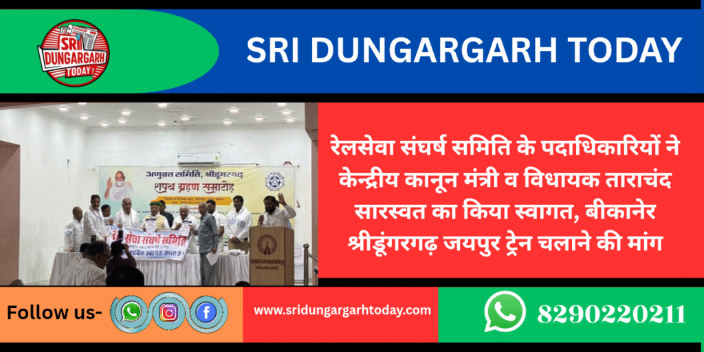 वन्दे भारत ट्रेन का श्रीडूंगरगढ़ मे ठहराव नहीं था। इसके लिए विभिन्न सामाजिक संगठनों तथा विधायक ताराचंद सारस्वत ने समय-समय पर केन्द्रीय मंत्री अर्जुन राम मेघवाल रेल मंत्री अश्विनी वैष्णव को पत्र लिखकर वन्दे भारत ट्रेन का ठहराव श्रीडूंगरगढ़ करवाने का प्रयास किया। रेलवे जारी प्रपत्र में भी श्री डूंगरगढ़ मे ठहराव नहीं दर्शाया गया। 23 सितम्बर को रेल सेवा संघर्ष समिति श्रीडूंगरगढ़ के अध्यक्ष व मंत्री ने बीकानेर पहुंचकर केन्द्रीय मंत्री अर्जुन राम मेघवाल से मुलाकात कर वन्दे भारत ठहराव की मांग रखी। मंत्री ने तत्काल उच्च अधिकारियों से सम्पर्क कर श्रीडूंगरगढ़ मे वन्दे भारत ट्रेन का ठहराव सुनिश्चित करवाया। ट्रेन चल रही डिस्प्ले मे भी अगला स्टेशन श्रीडूंगरगढ़ सेट करवाया गया। 25 सितंबर 2025 को वन्दे भारत ठहराव हुआ। केन्द्रीय मंत्री अर्जुन राम मेघवाल व विधायक ताराचंद सारस्वत का अणुव्रत समिति के शपथग्रहण समारोह श्रीडूंगरगढ़ तेरापंथ भवन ऊपरलो मे रेल सेवा संघर्ष समिति ने स्वागत सत्कार किया। तथा अभिनन्दन पत्र भेंट किया गया। रेलवे के जीएम जयपुर तथा डिआर एम बीकानेर का भी आभार व्यक्त कर सम्मानित किया जाएगा।इस अवसर पर बीकानेर जयपुर वाया श्रीडूंगरगढ़ पुनः चलाने की मांग की। उल्लेखनीय है कि अठारह वर्ष पहले बीकानेर वाया श्रीडूंगरगढ़ जयपुर ट्रेन चलतीं थी। बड़ी लाईन का कार्य शुरू होने के कारण बीकानेर जयपुर रेल सेवा बन्द हो गई। जो आजतक वापिस शुरू नही हो पाई। केन्द्रीय मंत्री अर्जुन राम मेघवाल ने शीघ्र बीकानेर जयपुर वाया श्रीडूंगरगढ़ ट्रेन चलाने का आश्वासन दिया। उपस्थित जनों ने तालियां बजाकर खुशी का इजहार किया।रेल सेवा संघर्ष समिति के अध्यक्ष तोलाराम मारू ने कहा कि ऐसे सांसद केन्द्रीय मंत्री अर्जुन राम मेघवाल पर हमें गर्व है। जिन्होंने रेलसेवा संघर्ष समिति की मांग पर बीकानेर सियालदा दुरंतो एक्सप्रेस का ठहराव भी बिना जक्सन के श्रीडूंगरगढ़ मे करवाया। इसके अलावा बीकानेर इन्दोर वाया श्रीडूंगरगढ़ रेल शुरू करवाई, रेल सेवा संघर्ष समिति के निवेदन पर बीकानेर वाया श्रीडूंगरगढ़ प्रयागराज ट्रेन चलवाई। तथा परीक्षा स्पेशल ट्रेन भी शुरू हुई जिसका ठहराव भी श्रीडूंगरगढ़ मे सुनिश्चित किया गया।
