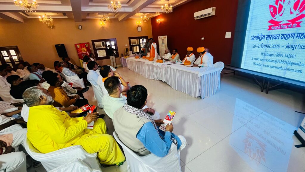 बैठक में जोधपुर के पूर्व महापौर घनश्याम ओझा व अधिवक्ता हस्तीमल सारस्वत ने समाजजनों को आगामी अंतरराष्ट्रीय सारस्वत ब्राह्मण महासम्मेलन (20-21 दिसम्बर, जोधपुर) में आमंत्रित किया।
