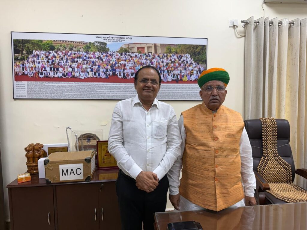 भोजास निवासी कोलकाता प्रवासी सामाजिक कार्यकर्ता गोवर्धनसिंह राजपुरोहित शनिवार को दिल्ली में कानून मंत्री अर्जुनराम मेघवाल से मुलाकात की। गोरधनसिंह ने दिल्ली में आयोजित एक कार्यक्रम में भाग लिया और स्वदेशी अपनाओ स्वदेशी बचाओ का संकल्प लिया। गोवर्धनसिंह ने बताया कि प्रधानमंत्री नरेंद्र मोदी के सपने को साकार करते हुए लोकल को सपोर्ट करने और स्वदेशी अपनाने की अपील की गई। वे भी इस अभियान से जुड़कर स्वदेशी अपनाने की अपील लोगों से करने के लिए अपना लगातार योगदान देंगे।