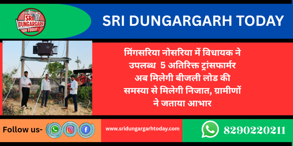 मिंगसरिया नोसरिया में विधायक ने उपलब्ध करवाए 5 अतिरिक्त ट्रांसफार्मर अब मिलेगी बीजली लोड की समस्या से निजात,ग्रामीणों ने जताया आभार