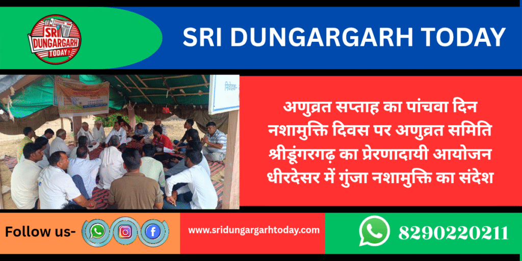 अणुव्रत समिति श्रीडूंगरगढ़ द्वारा नशामुक्ति दिवस के अवसर पर ग्राम धीरदेसर चोटियांन में एक प्रेरणा दायक एवं सार्थक कार्यक्रम आयोजित किया गया।