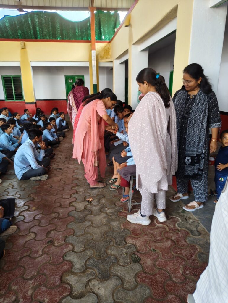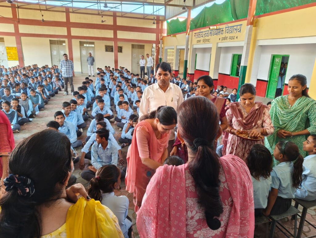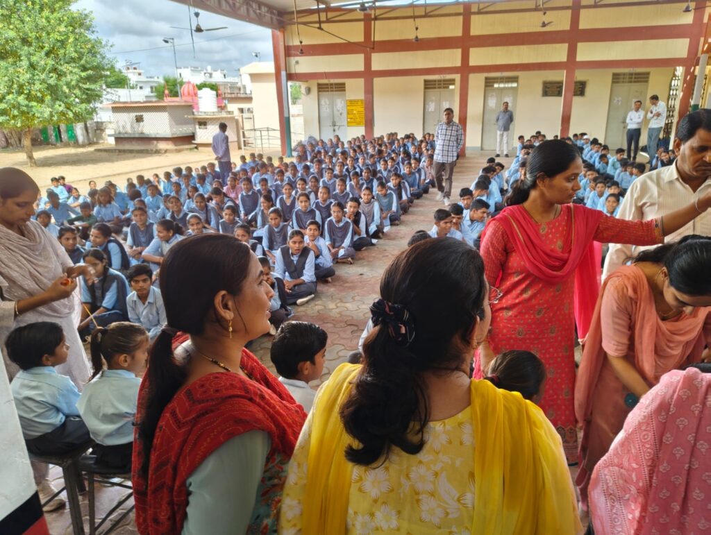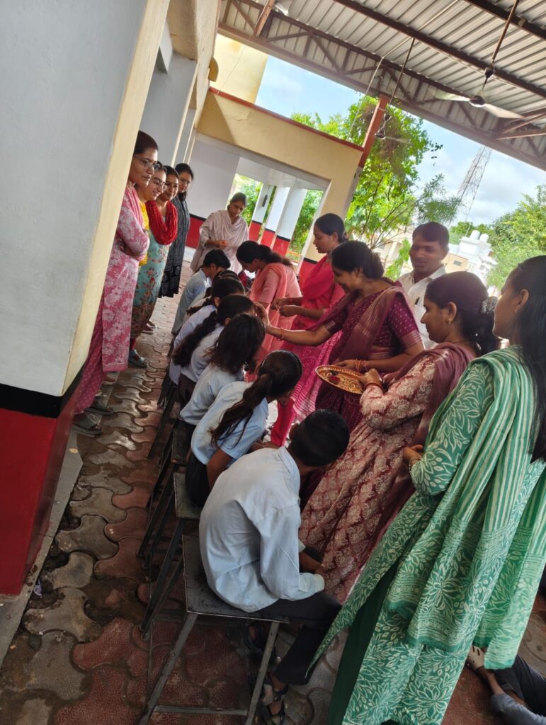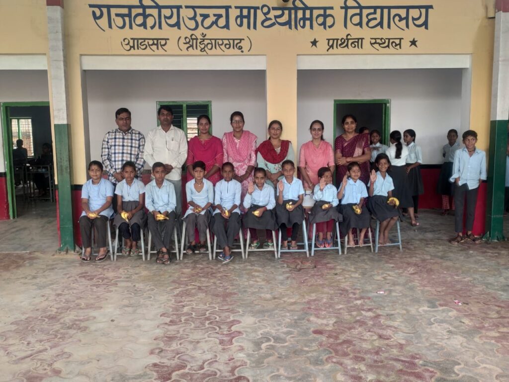 शारदीय नवरात्र के उपलक्ष्य में राजस्थान शिक्षक संघ राष्ट्रीय के आह्वान पर शरद पूर्णिमा के दिन गांव आडसर के राउमावि में कन्या पूजन का आयोजन किया गया। कार्यक्रम प्रार्थना सभा में रखा गया। जहां 11 कन्याओं का पूजन कर तिलकार्चन व रक्षा सूत्र बन्धन भी किया। शाला प्राचार्य पवन शर्मा ने माँ के नो रूपों की महिमा बताई कार्यक्रम का मुख्य उद्देश्य विद्यार्थियों में नारी शक्ति के प्रति सम्मान भाव जगाना व समाज में सुसंस्कार का संदेश देना हैं। कन्या पूजन में महिला स्टाफ प्रियंका गोदारा, सीमा कविया, सुनीता, अदिति, बिंदु, सरोज, सुमन, लोकेशी, मंजू, ज्योति सक्रिय रही। वहीं शिक्षक नेकीराम, गोवर्धन, प्रदीप, राजेश, हरलाल, रामस्वरूप ने भी कन्यापूजन किया व कार्यक्रम में सहयोगी बने शर्मा ने बताया विद्यालय के समस्त विद्यार्थियों ने शक्ति स्वरूपा कन्याओं का वंदन किया। इसके बाद मध्यांतर में कक्षा 1 से 8 के समस्त विद्यार्थियों को खीर जलेबी का भोज करवाया गया।