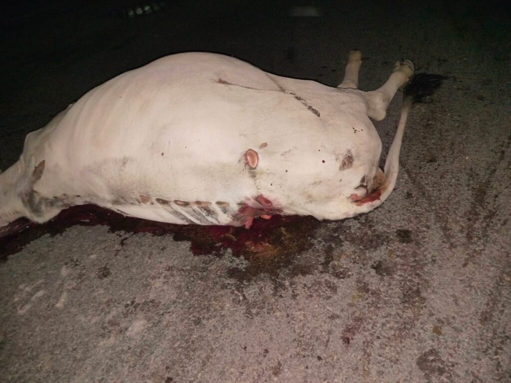 शेरुणा के पास कंटेनर ट्रक ने पांच गायों को कुचला, चार की मौत एक घायल,नशे में धुत चालक गिरफ्तार
