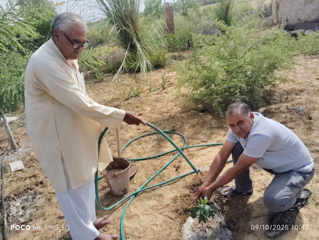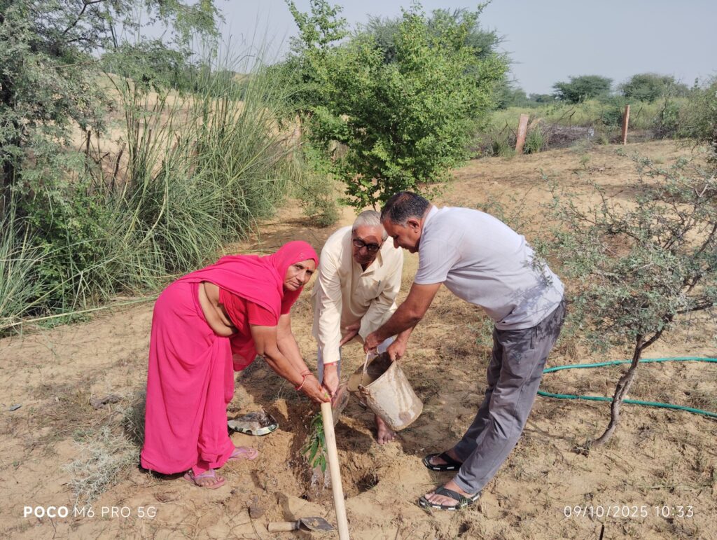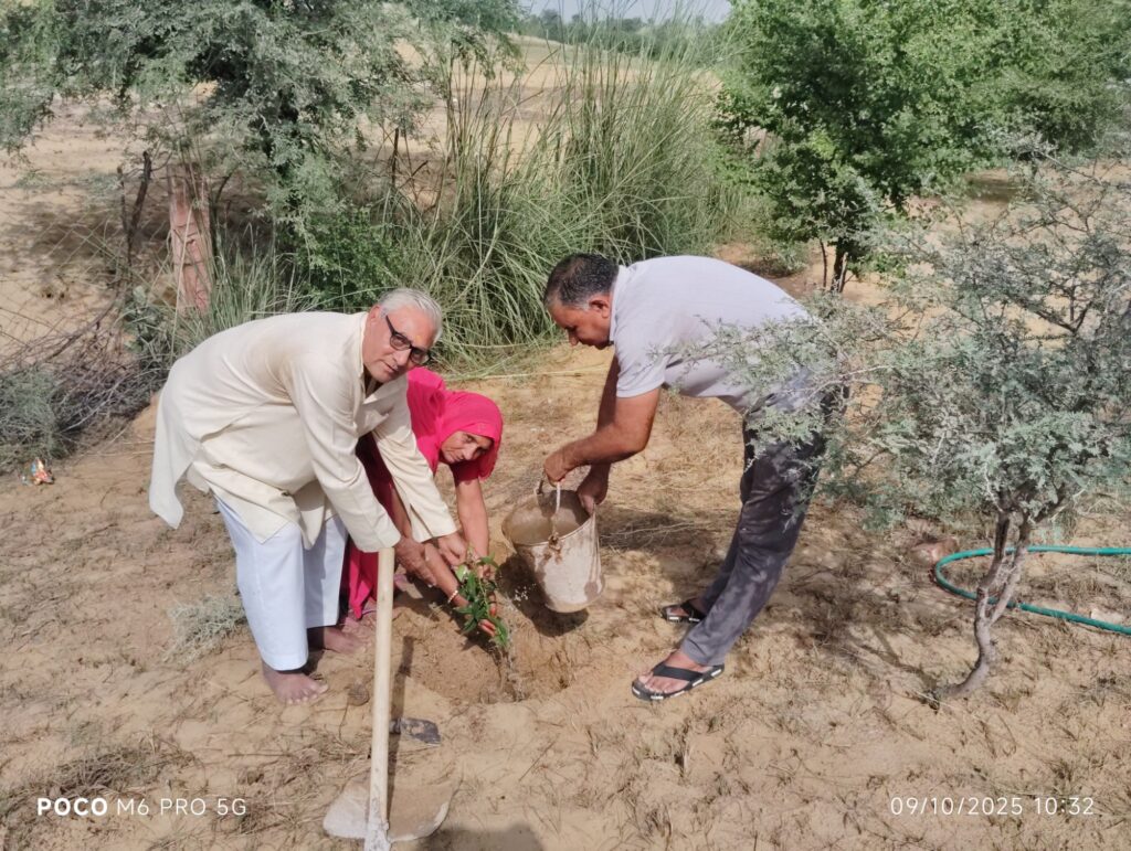 श्रीडूंगरगढ़ सरदारशहर रोड़ पर स्थित सुलोचना देवी सिखवाल की ढाणी में पौधारोपण का कार्यक्रम आयोजित किया गया। समाजसेवी हुलासमल सिखवाल ने अपनी पूज्य माताजी एवं पिताजी के स्मृति में अपनी धर्मपत्नी के साथ अर्जुन वृक्ष के पौधों का रोपण कर पर्यावरण संरक्षण का संदेश दिया। इस दौरान समाजसेवी प्रकाश चाहर ने वृक्षारोपण करते हुए अपने उद्बोधन में कहा कि वृक्ष- हरियाली धरती का गहना है, धरती को वृक्ष हीन न करें। प्रतिदिन जन्मदिन, पुण्य आत्माओं की स्मृति में खूब वृक्षारोपण कर धरती को हरा भरा करें। समाजसेवी चाहर ने इस अवसर पर कहा कि वृक्षारोपण के लिए यह उचित मौसम है इस मौसम में किया गया पौधारोपण भविष्य में वृक्ष बनेगा और हम सभी को प्राण वायु प्रदान करेगा साथ ही साथ इन्होंने कहा कि पौधारोपण करने के बाद पौधों की सुरक्षा पर ज्यादा ध्यान दें। सभी ने पौधारोपण कर उनकी सुरक्षा का संकल्प लिया।
