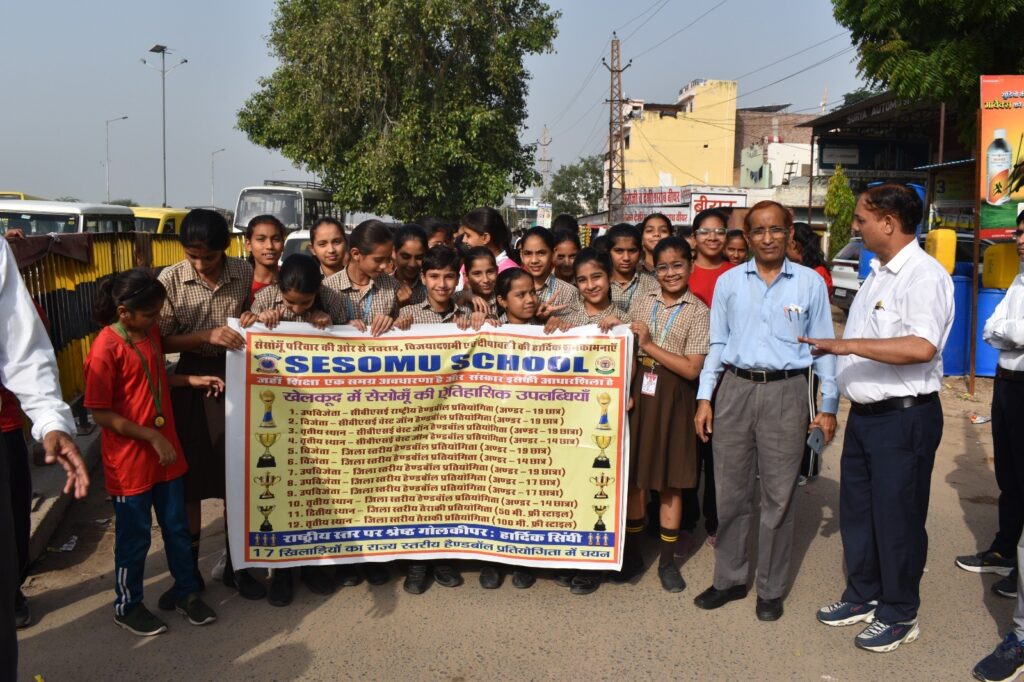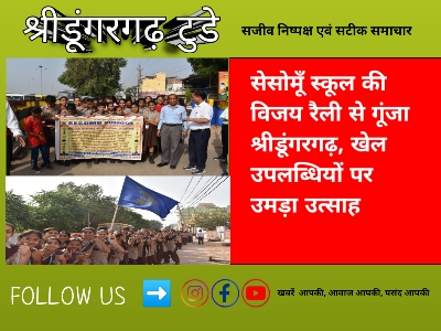 श्रीडूंगरगढ़। सेसोमूँ स्कूल द्वारा हाल ही में प्राप्त राष्ट्रीय, ज़ोनल एवं जिला स्तरीय खेल उपलब्धियों के उपलक्ष में गुरुवार को एक भव्य विजय रैली का आयोजन किया गया।