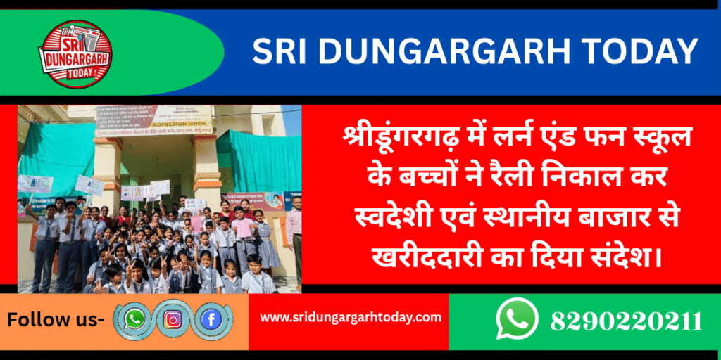 प्रधानमंत्री नरेंद्र मोदी ने देशवासियों से स्वदेशी अपनाने का आह्वान किया है ताकि वैश्विक आर्थिक अनिश्चितताओं से मुकाबला किया जा सके। उन्होंने आत्मनिर्भरता और समृद्धि का मंत्र देते हुए दुकानों को स्वदेशी वस्तुओं से सजाने की अपील की। पीएम मोदी ने कहा कि विकसित भारत का सपना तभी साकार होगा जब नागरिक गर्व से भारतीय वस्तुओं का उपयोग करेंगे। इसी को लेकर श्रीडूंगरगढ़ कस्बे में शनिवार को अनोखा नजारा देखने को मिला जब शहर के स्कूली बच्चों ने क्षेत्रवासियों से स्वदेशी अपनाने, ऑनलाईन के बजाए स्थानीय बाजार से ही खरीददारी करने का संदेश दिया। कस्बे की लर्न एंड फन स्कूल के नन्हें मुन्ने बच्चों ने शनिवार को कस्बे में रैली निकाली रैली में शामिल विद्यार्थियों ने स्लोगन लिखे तख्तियों को हाथों में लेकर विदेशी भगाओ-स्वदेशी अपनाओ देश बचाओ का नारा लगाते हुए लोगों को जागरूक करते दिखे। बच्चों ने लोगों के घरों में जाकर स्वदेशी अपनाने व स्थानीय छोटे दुकानदारों से ही दीपावली पर सामान खरीदने की अपील की। बच्चों ने दीपावली पर सड़क किनारे लगने वाली दुकानों से भी खरीददारी कर उनके घरों का त्योहार अच्छा बनाने में मदद करने का आग्रह किया। बाजार में सभी लोगों ने अपने देश का पैसा अपने देश में रखने की जागरूकता आम जीवन में अपनाने की बात कही। प्रधानाध्यापिका विनिता सारस्वत ने कहा कि देश को सशक्त बनाने के लिए स्वदेशी वस्तुओं का उपयोग आवश्यक है। उन्होंने बताया कि स्वदेशी से हृदय में ‘स्व’ की भावना का विकास होता है। उन्होने कहा हमें स्वदेशी वस्तुओं को उपयोग करना चाहिए। इससे हमारे देश को समृद्ध बनाया जा सकता है। स्वदेशी वस्तुओं के प्रयोग से देश में छोटे उद्योगों को भी बढ़ावा मिलेगा और युवाओं के लिए रोजगार के अवसर भी पैदा होंगे। आजकल बच्चों को परिजनों द्वारा अपनी और से अधिकतम सुविधाएं उपलब्ध करवाई जाती है एवं बिना किसी दिक्कतों को समझे ही परिजनों से सुविधाएं लेने वाले बच्चों को पैसों का एवं अपने परिजनों द्वारा दी जा रही सुविधाओं का महत्व समझ कम ही आता है। ऐसे में शनिवार को किए गए इस आयोजन में बच्चों ने पैसों का महत्व तो समझा ही साथ ही परिजनों का आभार भी जताया। प्राचार्य विनिता सारस्वत ने बताया कि बच्चों को इस दौरान अपने घर से लाए रूपयों से सार्थक सामान की खरीददारी करवाई गई। उन्हें पैसा कमाने के लिए लोगों द्वारा किए जा रहें संघर्ष को बताया गया। निरर्थक सामानों की खरीददारी नहीं करने व रूपयों का महत्व समझाने के लिए अनेक उदाहरण दिए गए। सारस्वत ने बताया कि इस सकारात्मक पहल को अभिभावकों ने खूब सराहा और जागरूक लोगों ने भी देशहित में संवेदनशील संदेश को अपनाने की बात कही।प्रधानाध्यापिका विनिता सारस्वत ने 