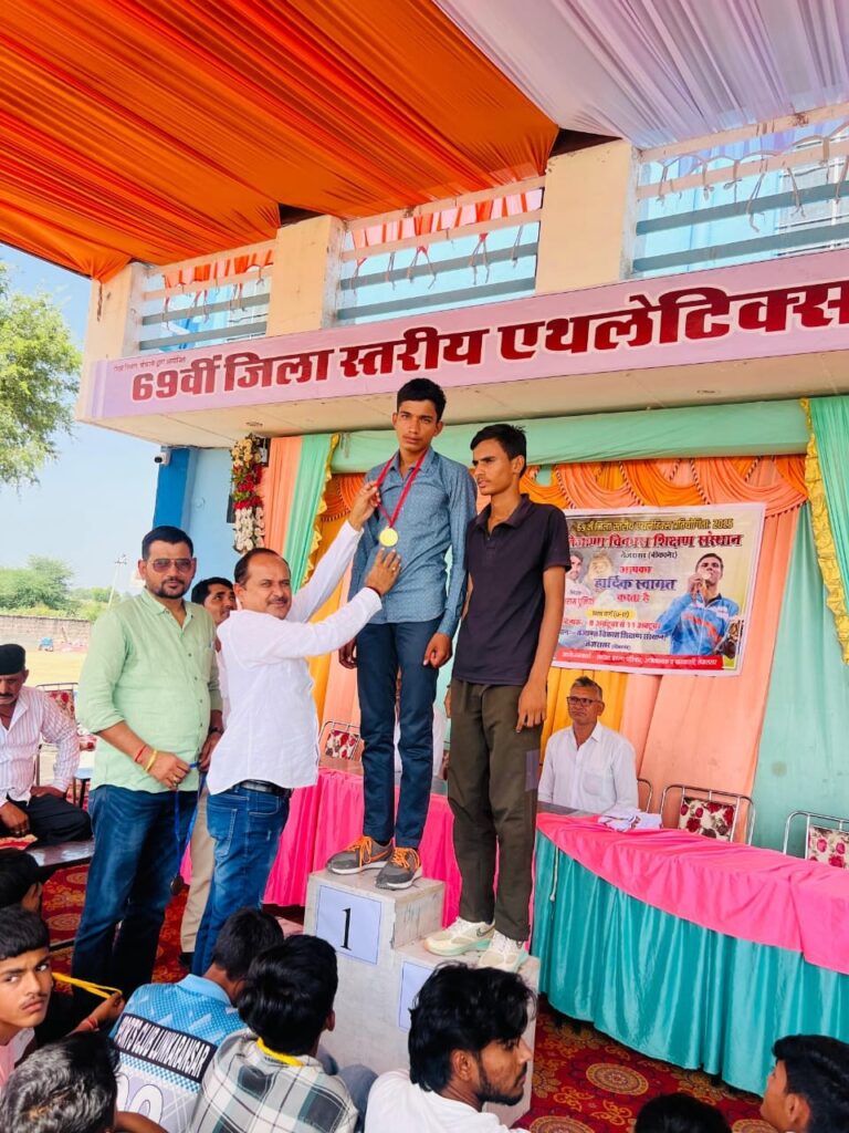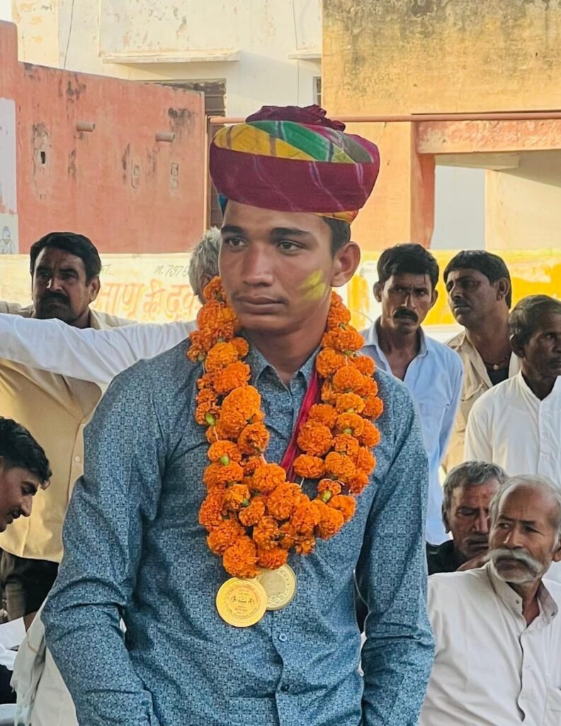 तेजरासर में चल रही 69वीं जिला स्तरीय एथलेटिक्स प्रतियोगिता में क्षेत्र के गांव बादनूं के धावक शिवलाल पुत्र भंवरलाल घिंटाला ने शानदार प्रदर्शन करते हुए दो स्वर्ण पदक अपने नाम किए। महात्मा गांधी राजकीय आदर्श विद्यालय के कक्षा 11वीं के छात्र शिवलाल ने 3000 मीटर दौड़ 10 मिनट 13 सेकंड में पूरी कर पहला गोल्ड जीता जबकि 1500 मीटर दौड़ 4 मिनट 45 सेकंड में पूरी कर दूसरा गोल्ड हासिल किया। दोनों वर्गों में विजेता बनकर शिवलाल का चयन राज्य स्तरीय प्रतियोगिता के लिए हुआ। शिवलाल के कोच ने बताया कि उसकी गति, धैर्य व खेल समर्पण के कारण व जिला चैपिंयन बना है। उसके उत्कृष्ट प्रदर्शन से स्कूल और गांव में खुशी की लहर दौड़ गई। ग्रामीणों ने उसके स्वागत में विजय जुलूस निकाला और आतिशबाजी की। शिक्षकों व जनप्रतिनिधियों ने उसे बधाई देते हुए राज्य स्तर पर उत्कृष्ट प्रदर्शन की शुभकामनाएं दीं।