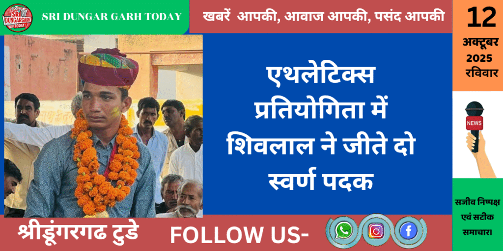 तेजरासर में चल रही 69वीं जिला स्तरीय एथलेटिक्स प्रतियोगिता में क्षेत्र के गांव बादनूं के धावक शिवलाल पुत्र भंवरलाल घिंटाला ने शानदार प्रदर्शन करते हुए दो स्वर्ण पदक अपने नाम किए। महात्मा गांधी राजकीय आदर्श विद्यालय के कक्षा 11वीं के छात्र शिवलाल ने 3000 मीटर दौड़ 10 मिनट 13 सेकंड में पूरी कर पहला गोल्ड जीता जबकि 1500 मीटर दौड़ 4 मिनट 45 सेकंड में पूरी कर दूसरा गोल्ड हासिल किया। दोनों वर्गों में विजेता बनकर शिवलाल का चयन राज्य स्तरीय प्रतियोगिता के लिए हुआ। शिवलाल के कोच ने बताया कि उसकी गति, धैर्य व खेल समर्पण के कारण व जिला चैपिंयन बना है। उसके उत्कृष्ट प्रदर्शन से स्कूल और गांव में खुशी की लहर दौड़ गई। ग्रामीणों ने उसके स्वागत में विजय जुलूस निकाला और आतिशबाजी की। शिक्षकों व जनप्रतिनिधियों ने उसे बधाई देते हुए राज्य स्तर पर उत्कृष्ट प्रदर्शन की शुभकामनाएं दीं।