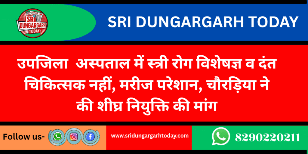 श्रीडूंगरगढ़ के राजकीय उप जिला चिकित्सालय में लंबे समय से स्त्री रोग विशेषज्ञ व दंत चिकित्सक के पद रिक्त होने से आमजन को भारी परेशानी का सामना करना पड़ रहा है। क्षेत्र की जनता की इस गंभीर समस्या को लेकर वरिष्ठ कांग्रेसी नेता सामाजिक कार्यकर्ता तुलसीराम चौरड़िया ने मुख्य चिकित्सा एवं स्वास्थ्य अधिकारी बीकानेर को पत्र लिखकर शीघ्र नियुक्ति की मांग की है। चौरड़िया ने पत्र में उल्लेख किया कि श्रीडूंगरगढ़ तहसील का यह अस्पताल क्षेत्र का सबसे बड़ा सरकारी चिकित्सालय है, जहाँ प्रतिदिन हजारों मरीज उपचार के लिए आते हैं। लेकिन स्त्री रोग विशेषज्ञ (गायनिक डॉक्टर) और दंत चिकित्सक की अनुपलब्धता के कारण विशेषकर महिलाओं को प्रसव जैसी गंभीर स्थितियों में बीकानेर या अन्य स्थानों की ओर रुख करना पड़ता है, जिससे उन्हें शारीरिक, मानसिक व आर्थिक परेशानी झेलनी पड़ती है।उन्होंने कहा कि यह स्थिति अत्यंत चिंताजनक एवं जनहित के विपरीत है,उन्होंने स्वास्थ्य विभाग से आग्रह किया है कि आमजन की सुविधा को देखते हुए दोनों पदों पर तत्काल नियुक्ति की जाए, ताकि क्षेत्रवासियों को राहत मिल सके।